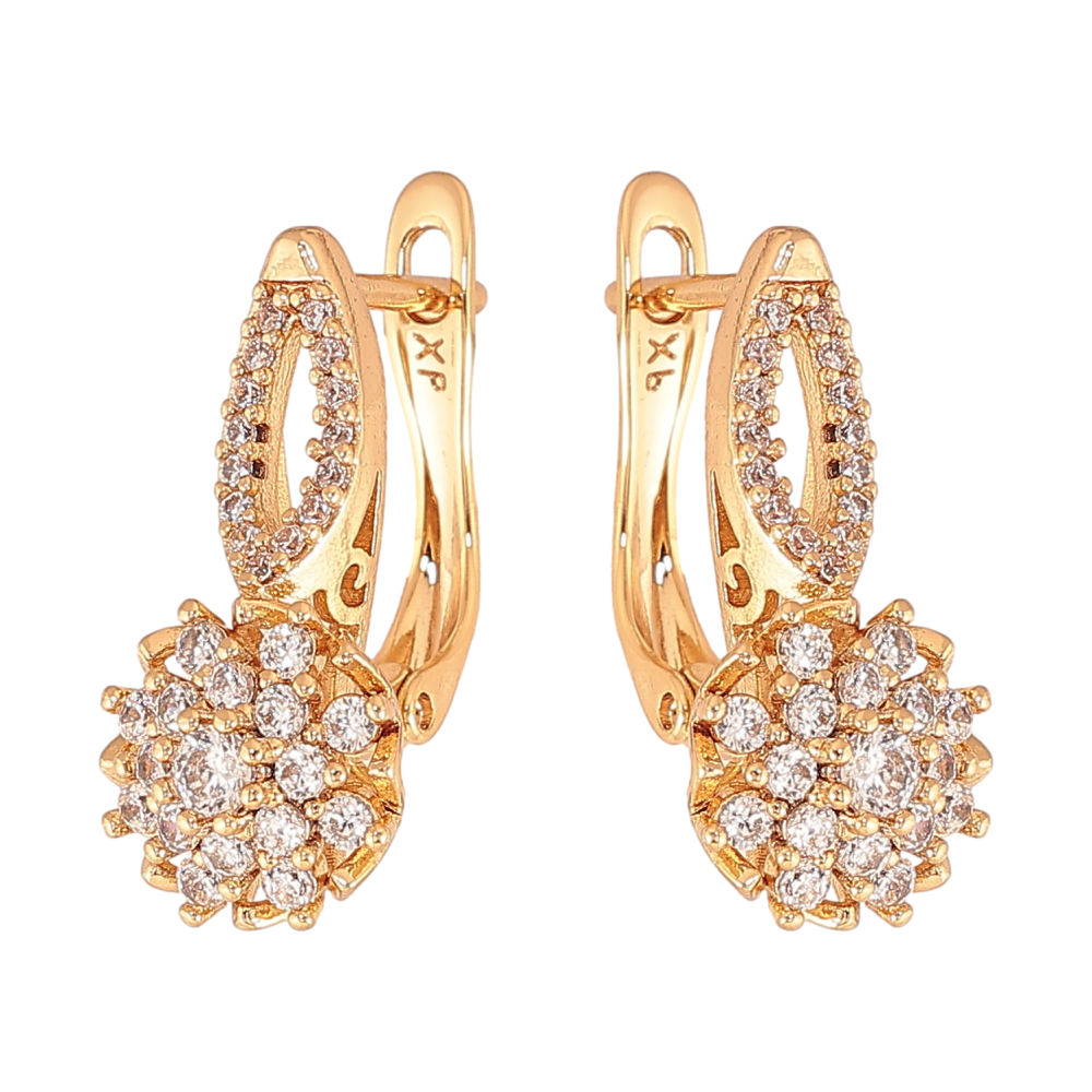 Серьги Xuping цвет Позолота 18К английский замок "Инкрустация кристаллами"