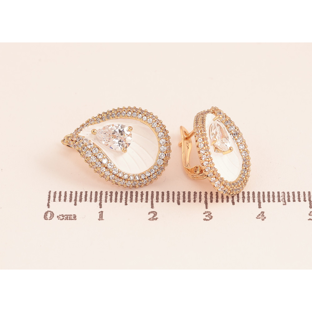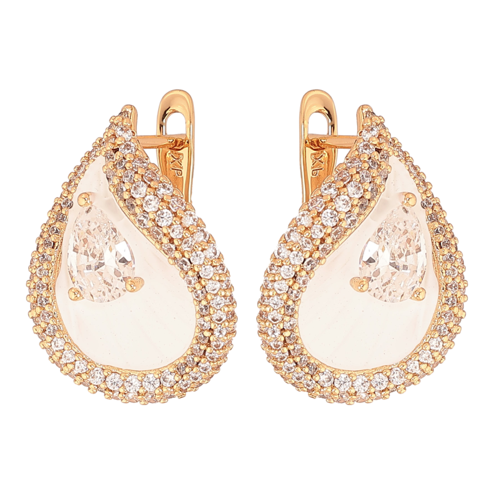 Серьги Xuping цвет Позолота 18К английский замок "Капельки с инкрустацией кристаллами и белой эмалью"