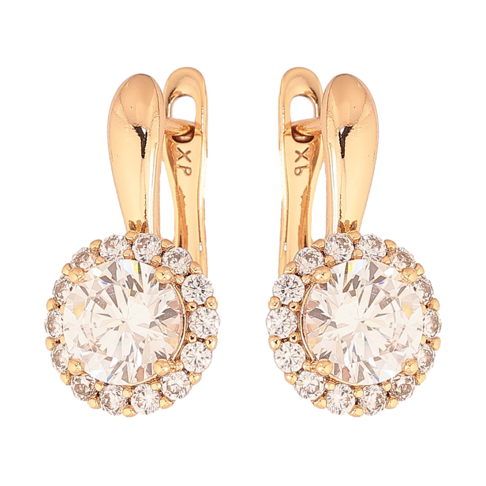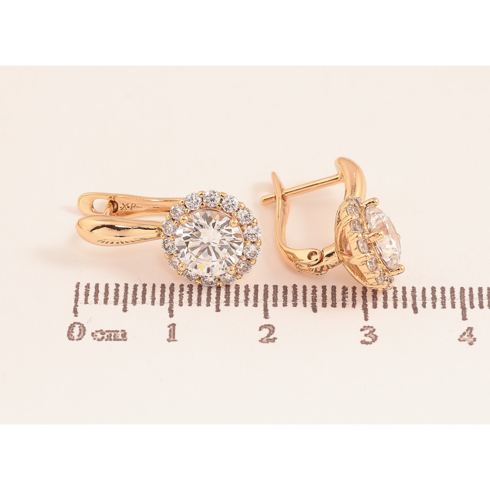 Серьги Xuping цвет Позолота 18К английский замок "Кристальный блеск"