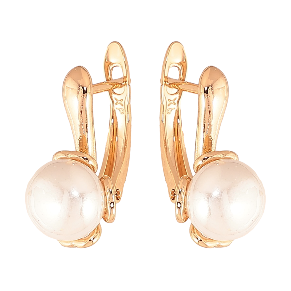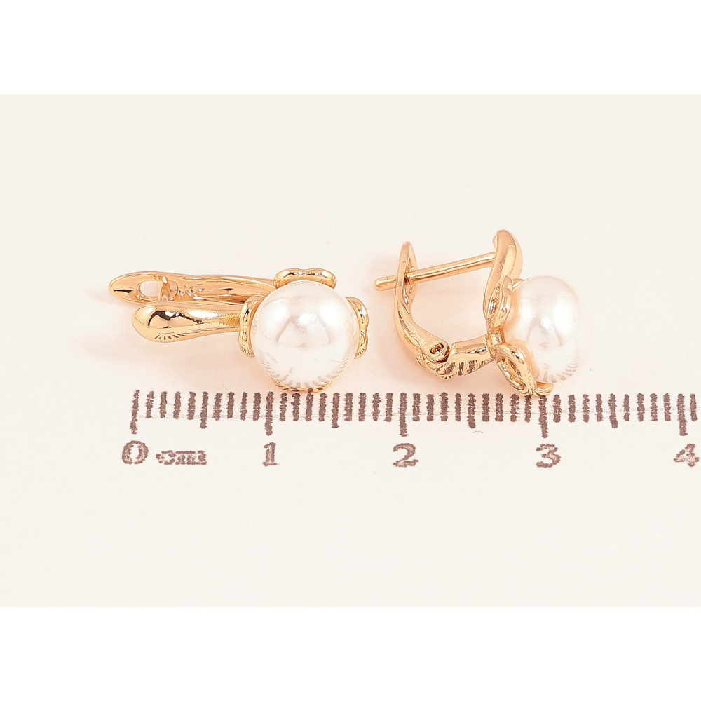 Серьги Xuping цвет Позолота 18К английский замок "Цветочки с жемчугом"