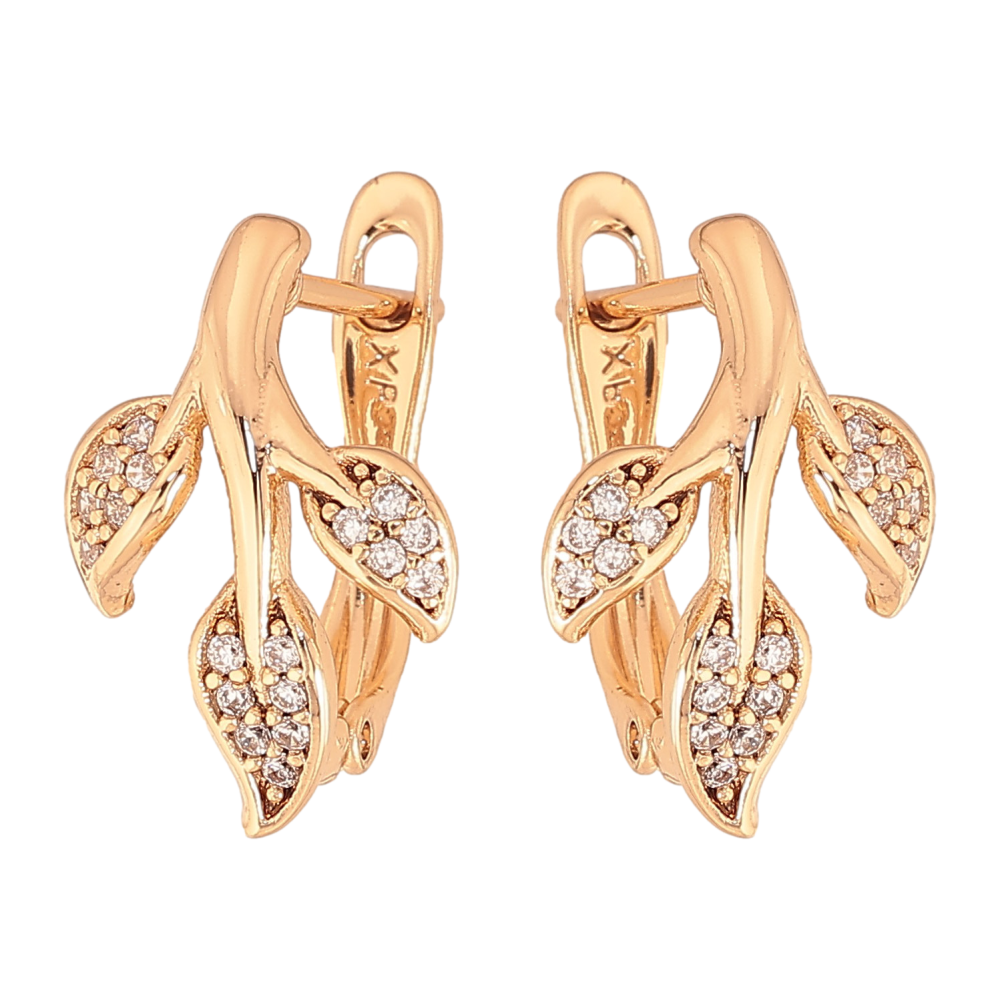 Серьги Xuping цвет Позолота 18К английский замок "Листики" фото №1