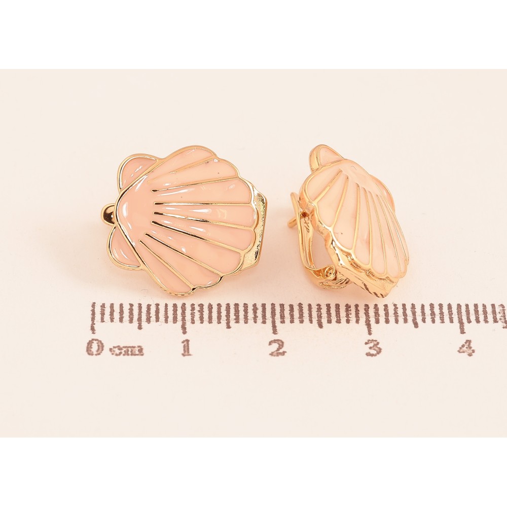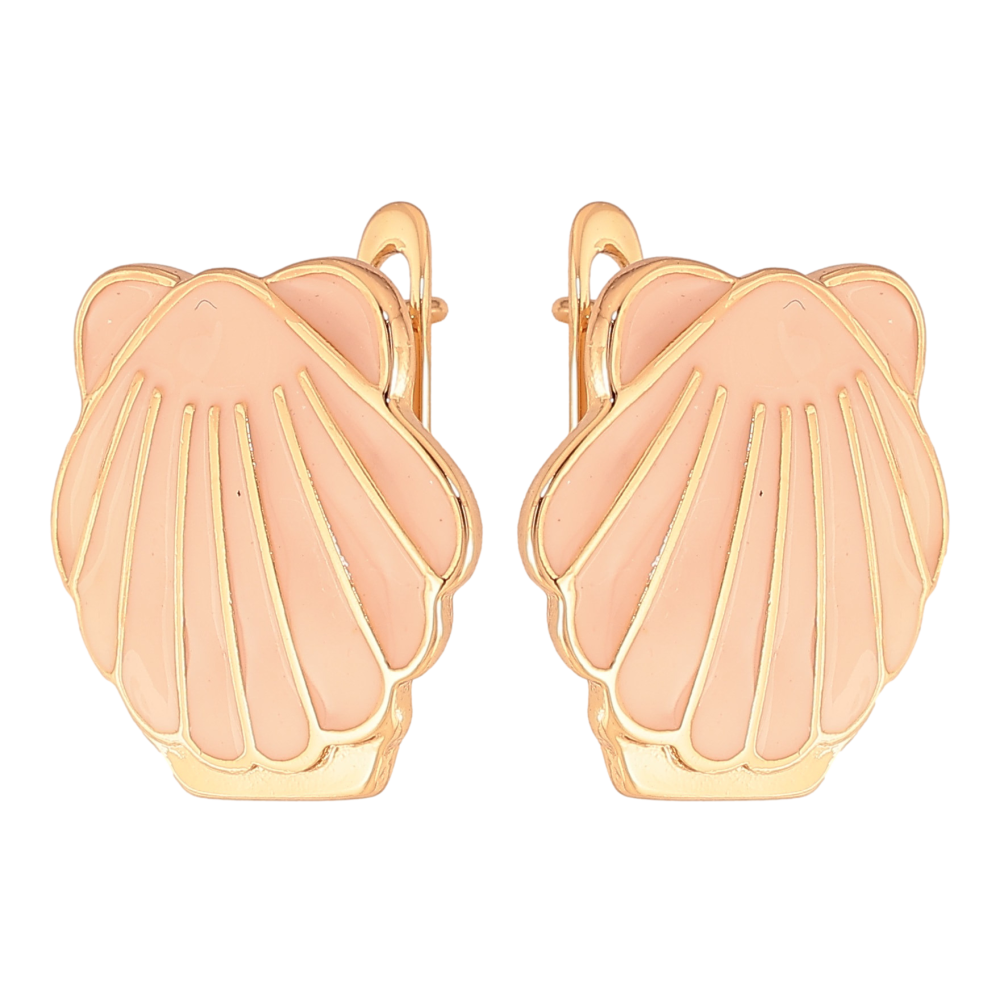 Серьги Xuping цвет Позолота 18К английский замок "Ракушки с розовой эмалью"