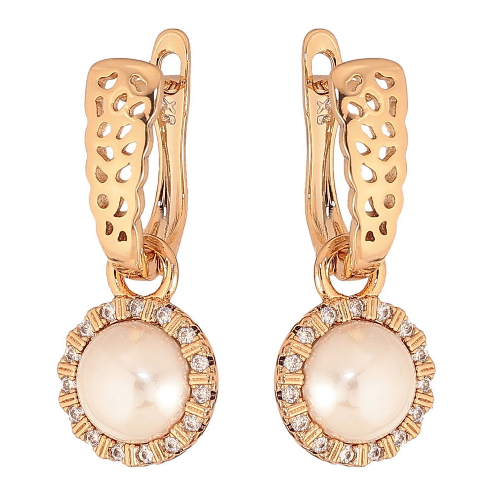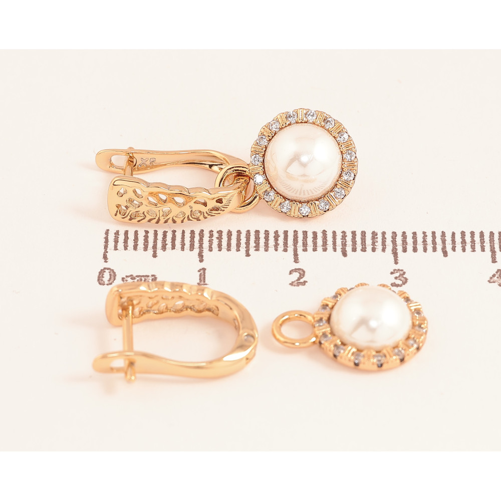 Серьги Xuping цвет Позолота 18К английский замок "Жемчужные подвески" 2 в 1
