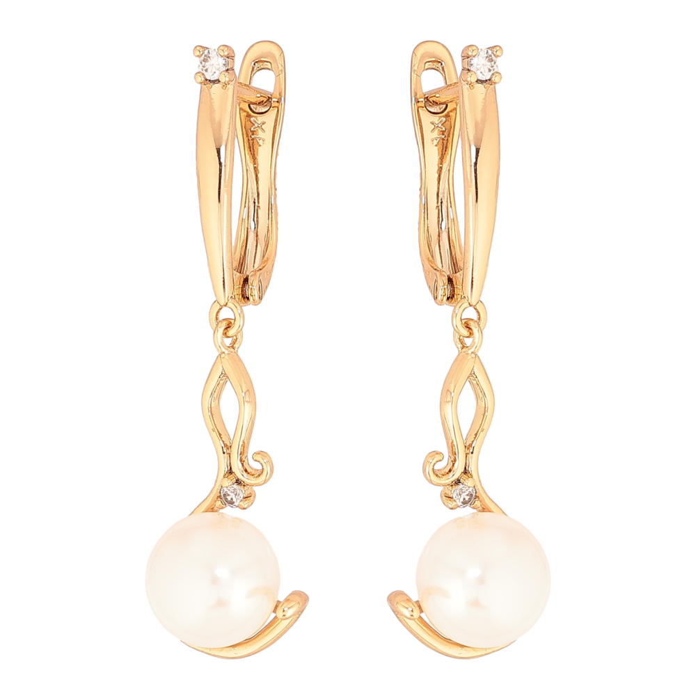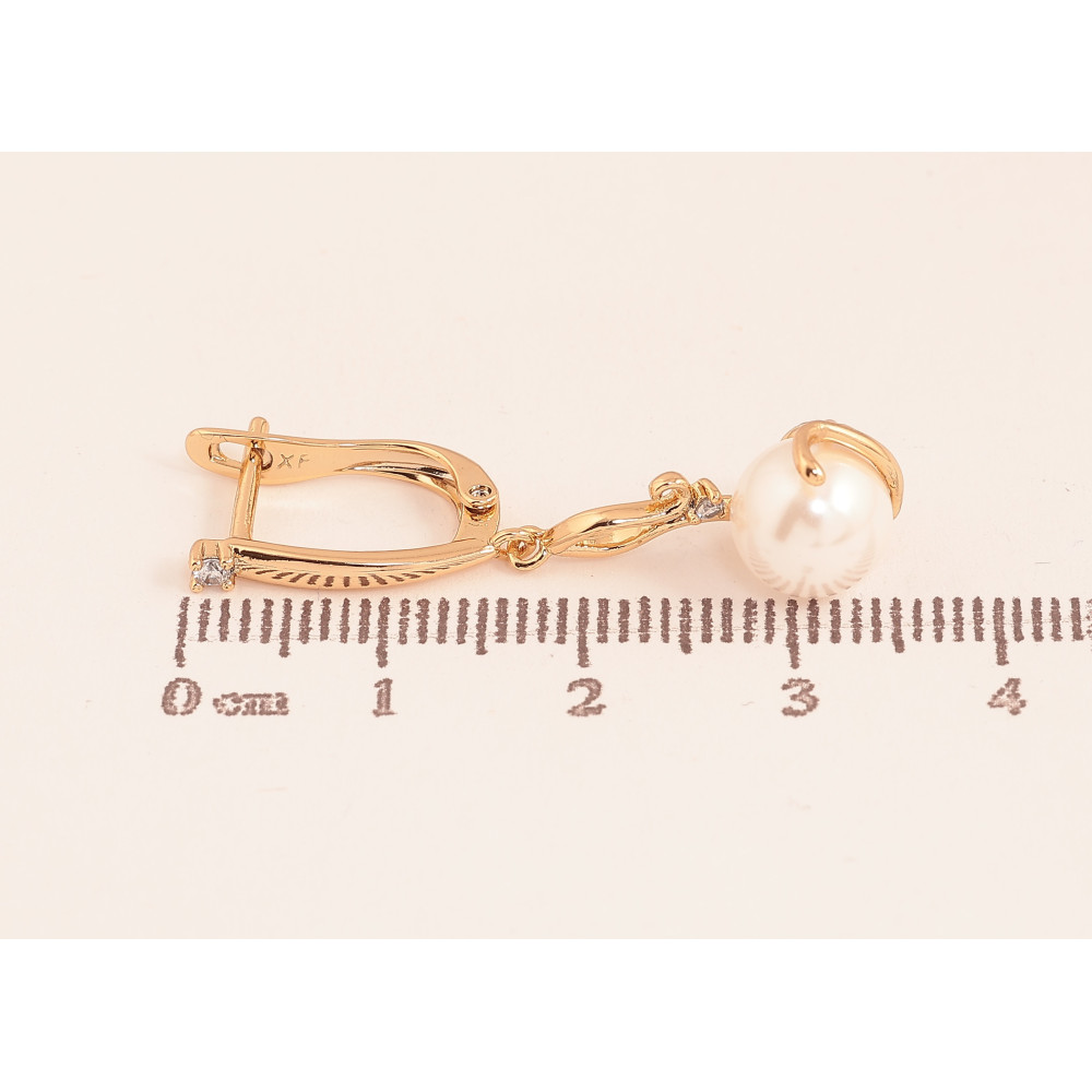 Серьги Xuping цвет Позолота 18К английский замок "Жемчужные подвески"