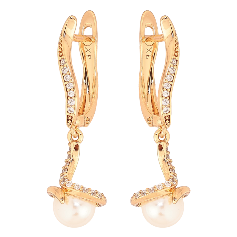 Серьги Xuping цвет Позолота 18К английский замок "Жемчужные подвески"