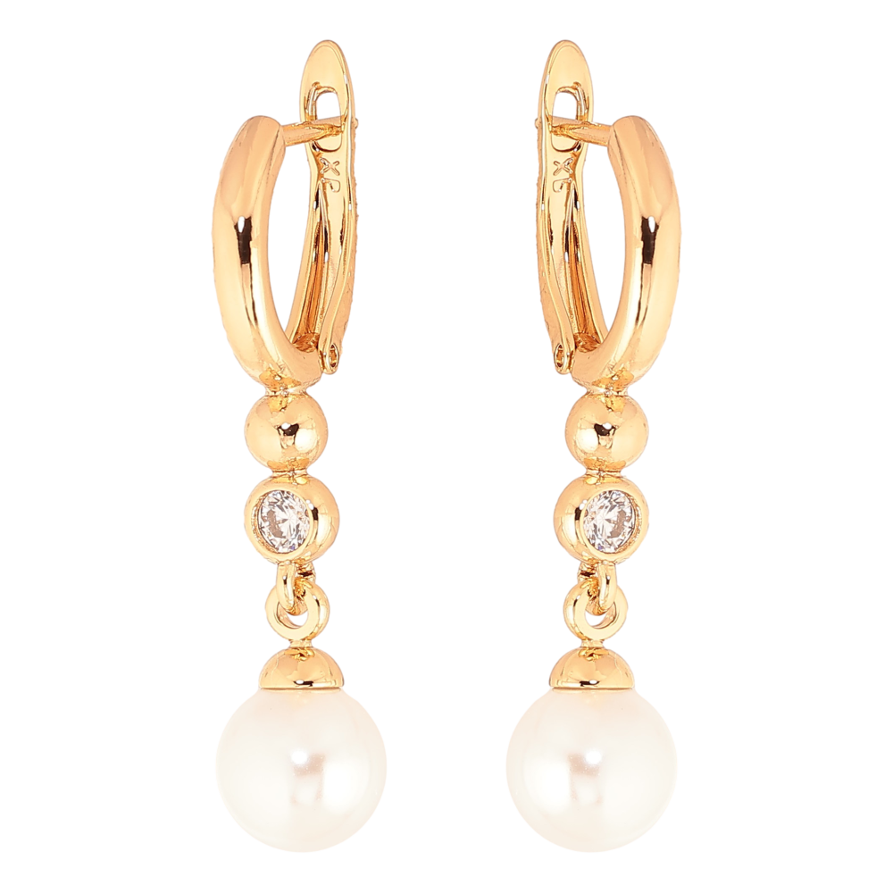 Серьги Xuping цвет Позолота 18К английский замок "Жемчужные подвески с кристаллами"