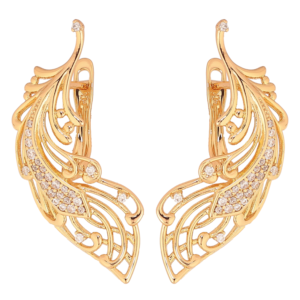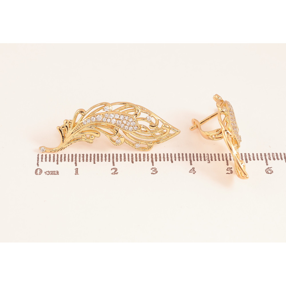 Серьги Xuping цвет Позолота 18К английский замок "Перо" фото №1