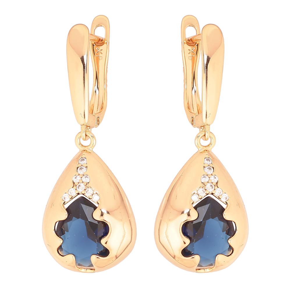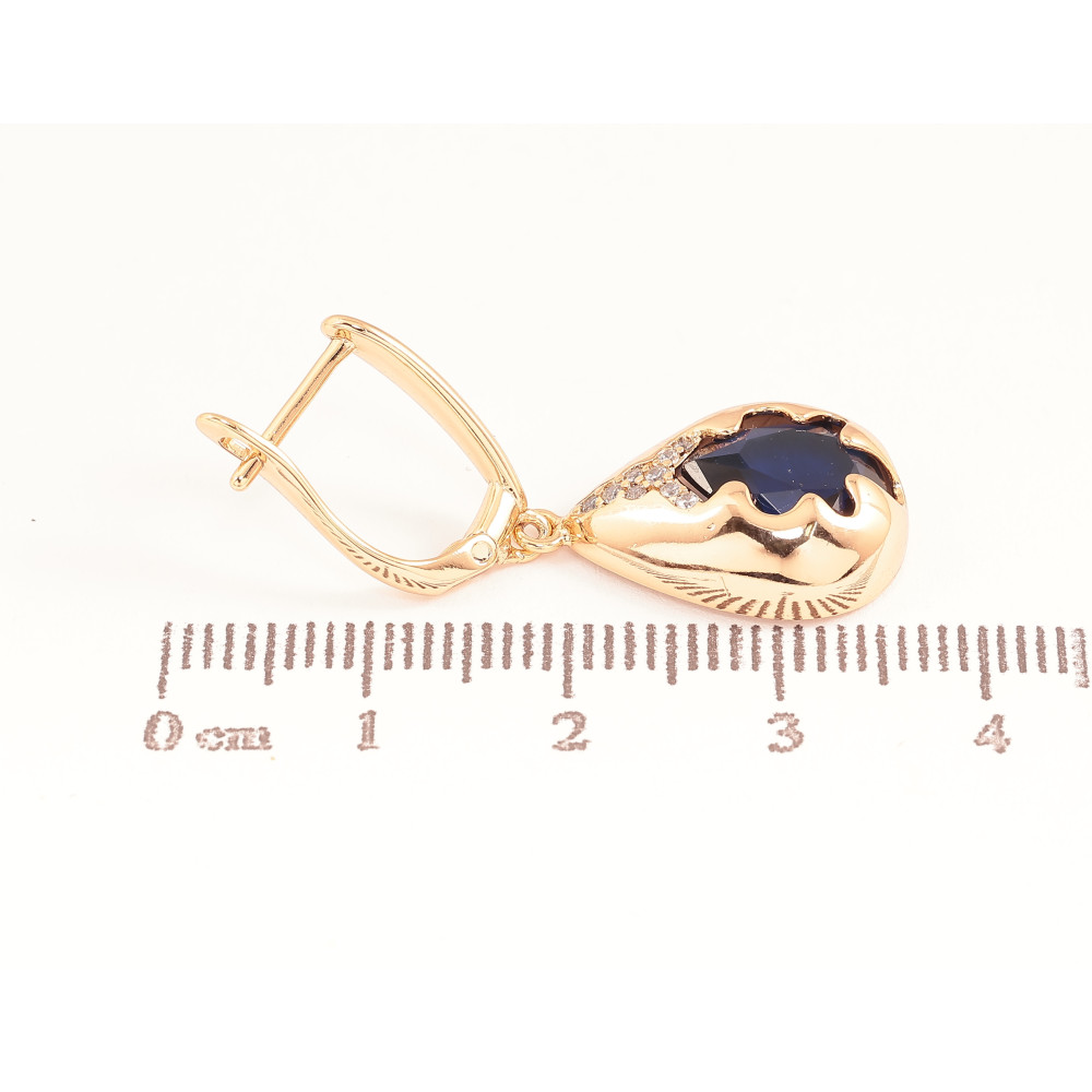 Серьги Xuping цвет Позолота 18K английский замок "Подвески с синими кристаллами"