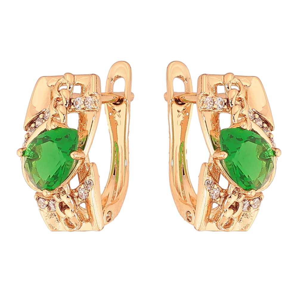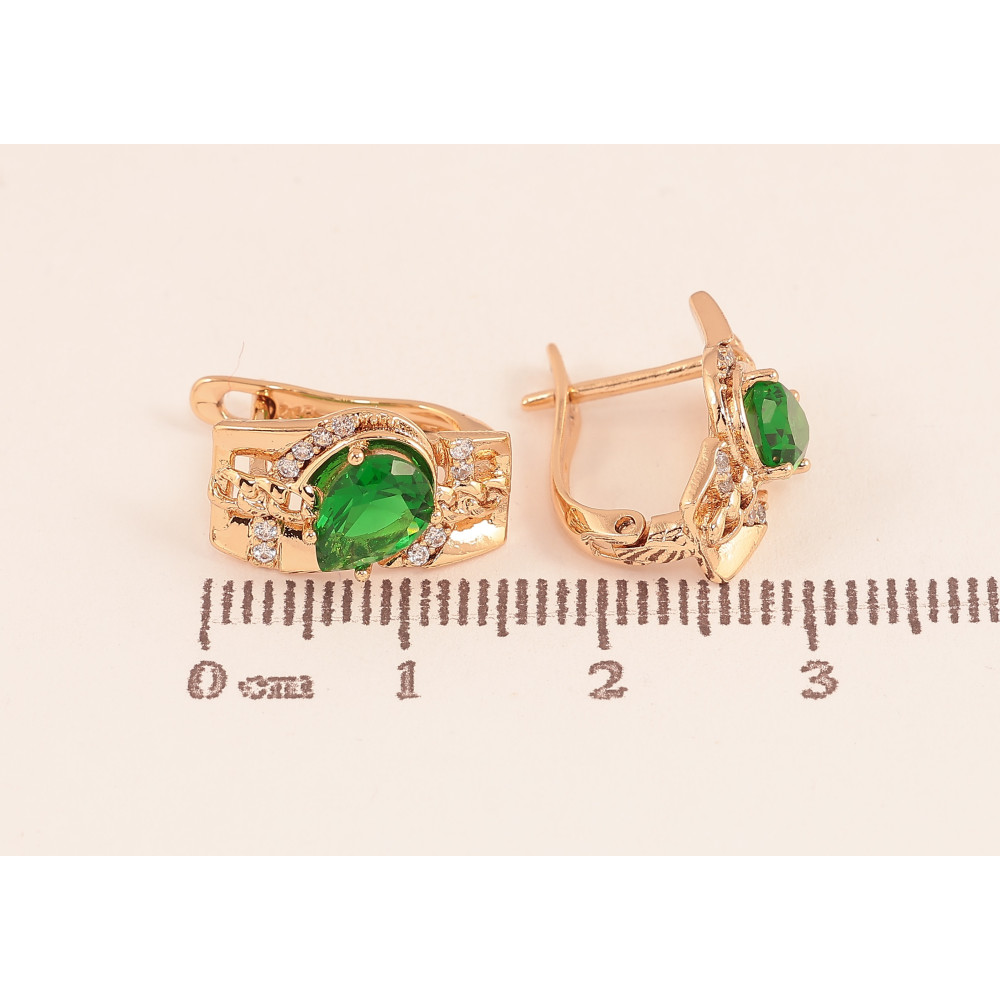 Серьги Xuping цвет Позолота 18К английский замок "Узор с зелеными кристаллами"