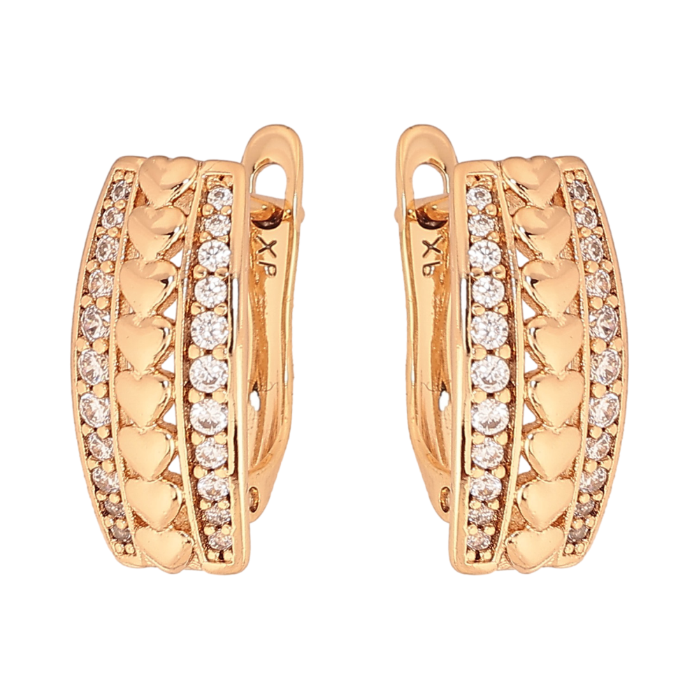 Серьги Xuping цвет Позолота 18К английский замок "Узор сердечки с кристаллами"