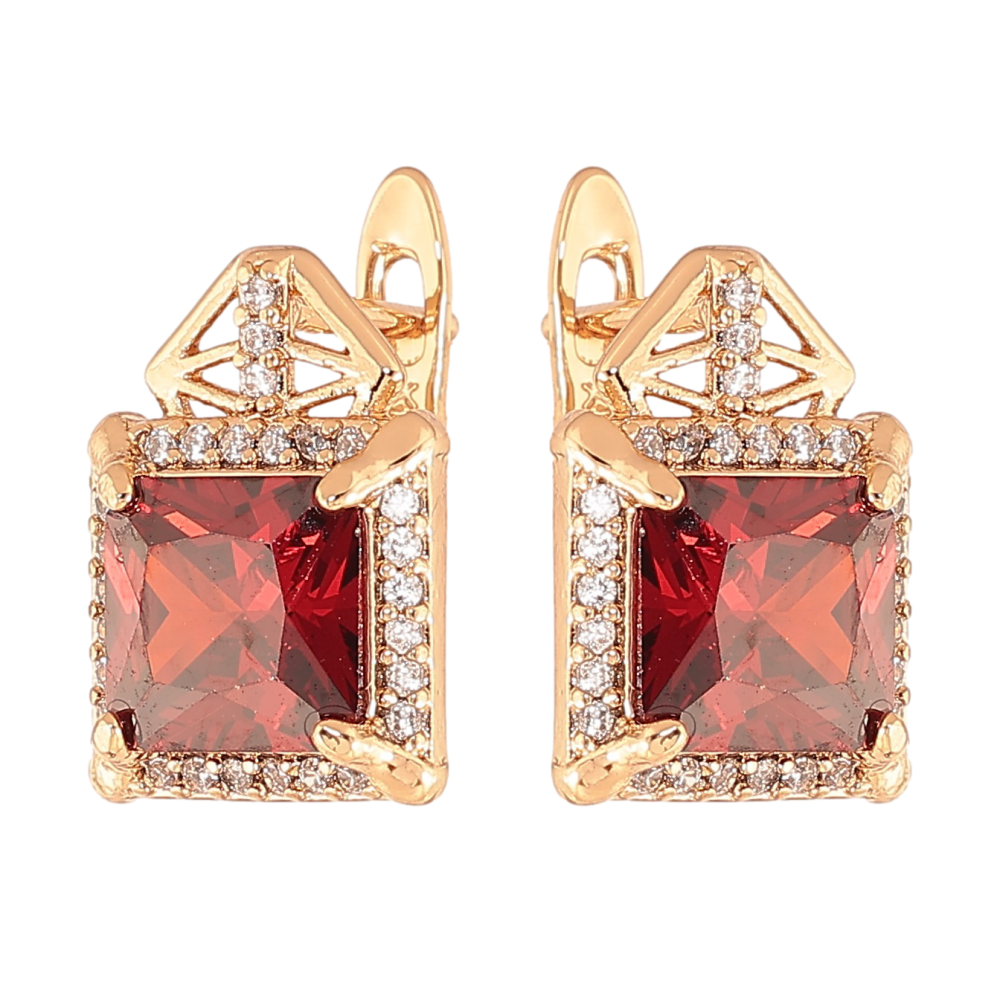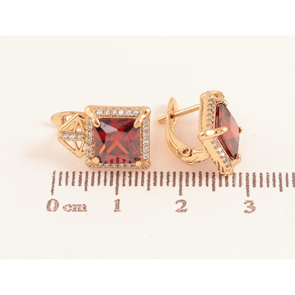 Серьги Xuping цвет Позолота 18K английский замок "Узор с красными кристаллами"