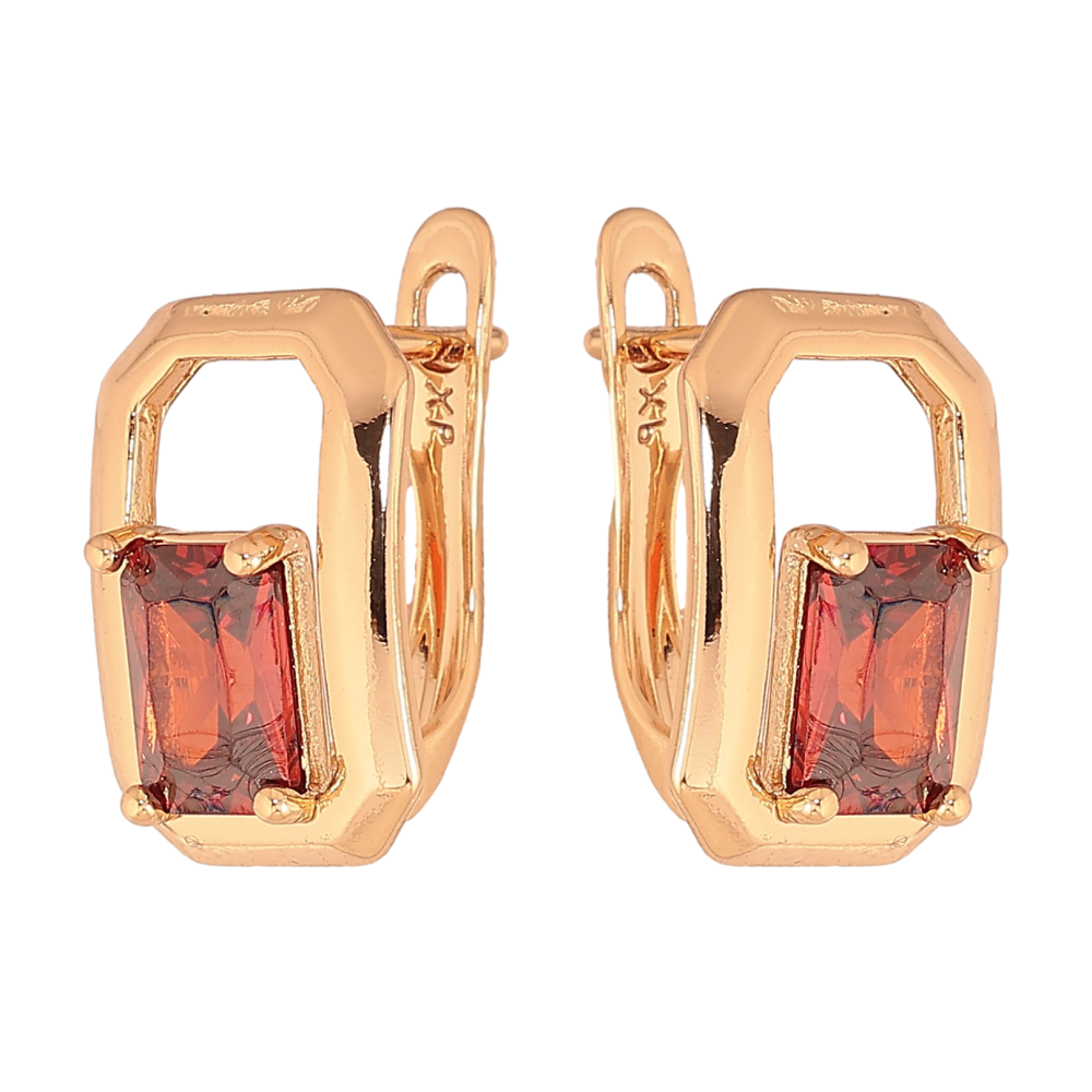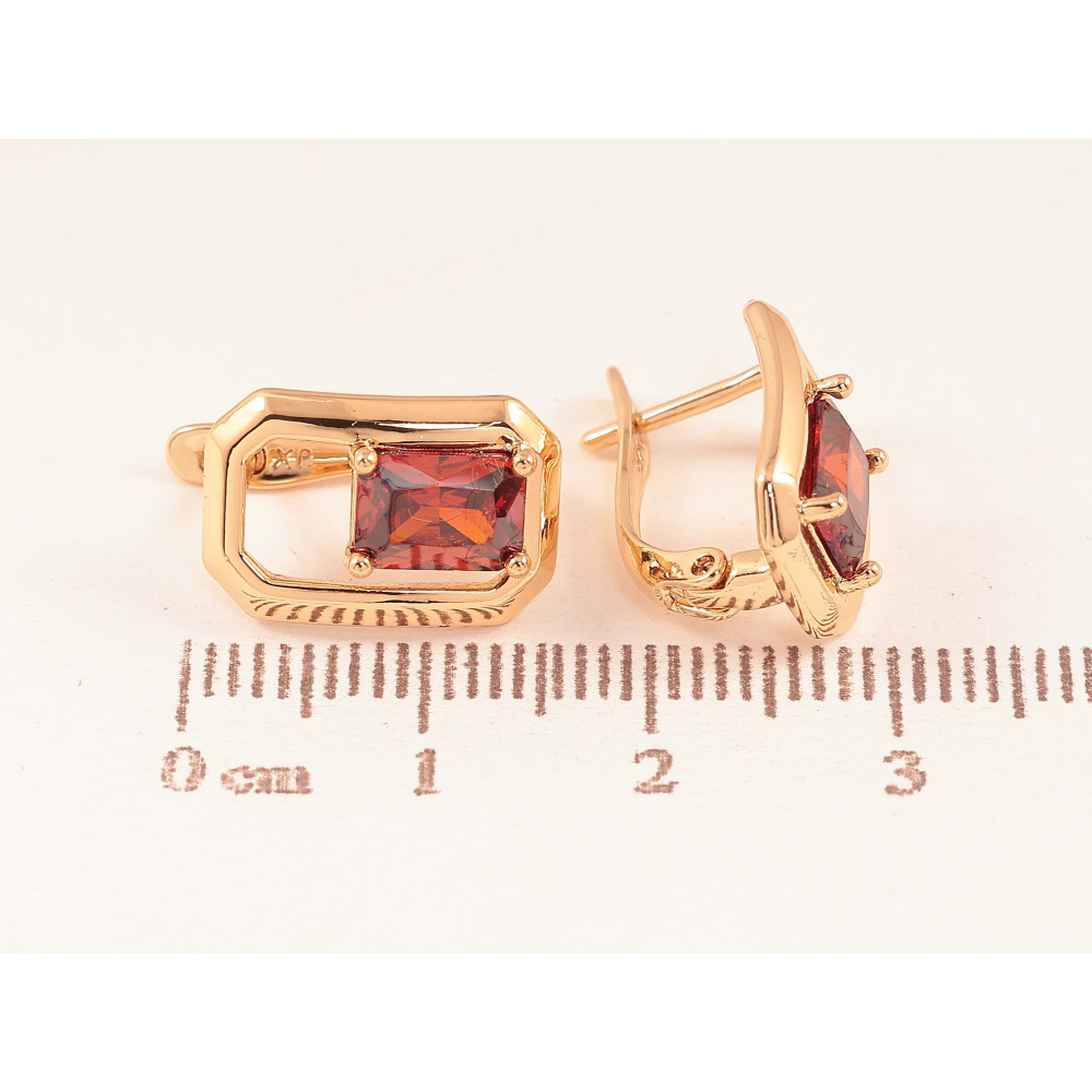 Серьги Xuping цвет Позолота 18К английский замок "Узор с красными кристаллами"