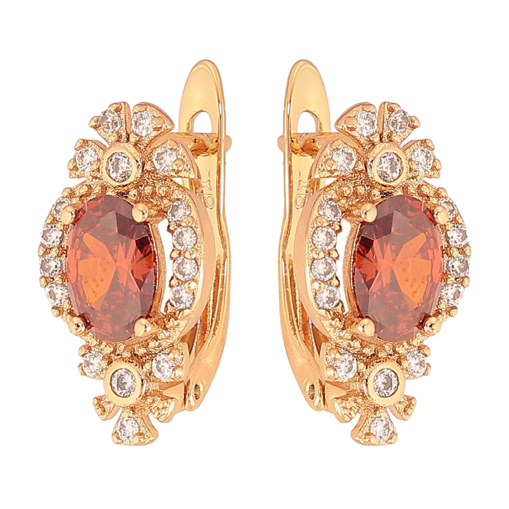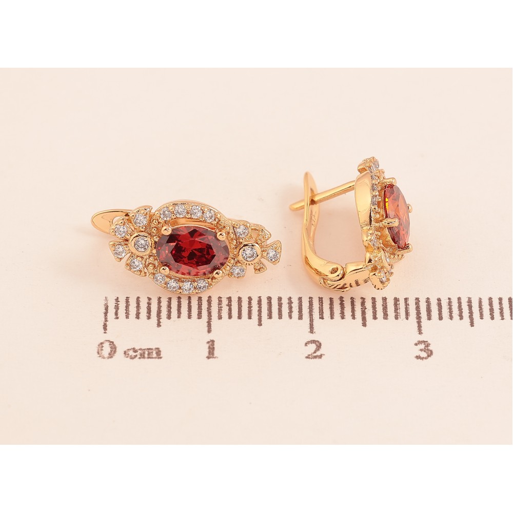 Серьги Xuping цвет Позолота 18К английский замок "Узор с красными кристаллами"