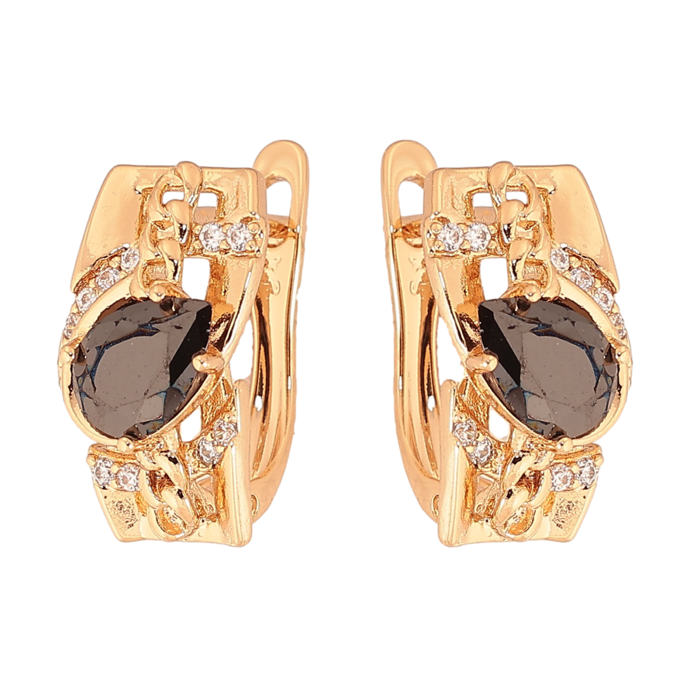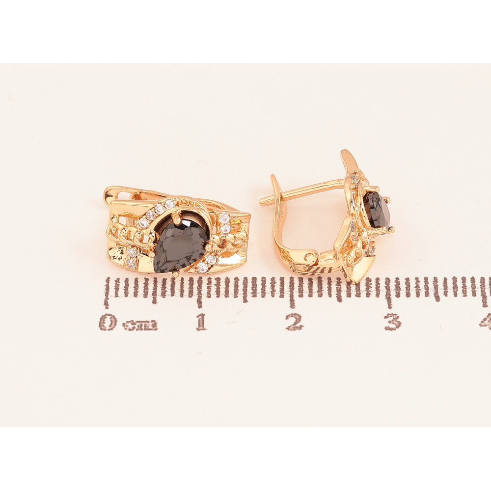 Серьги Xuping цвет Позолота 18К английский замок "Узор с черными кристаллами"