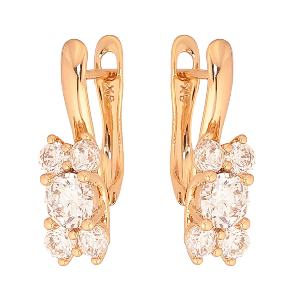 Серьги Xuping цвет Позолота 18К английский замок "Узор с кристаллами"