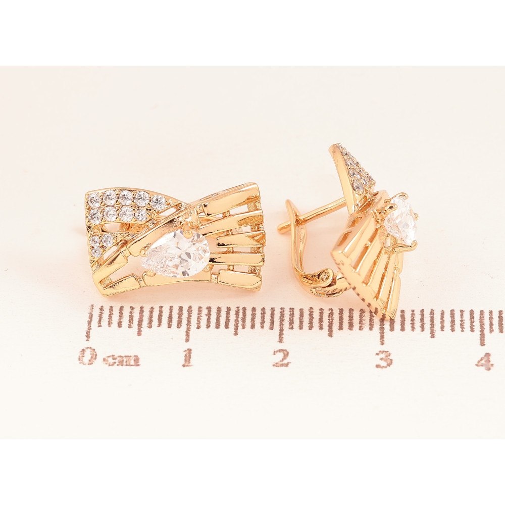 Серьги Xuping цвет Позолота 18К английский замок "Узор с кристаллами"