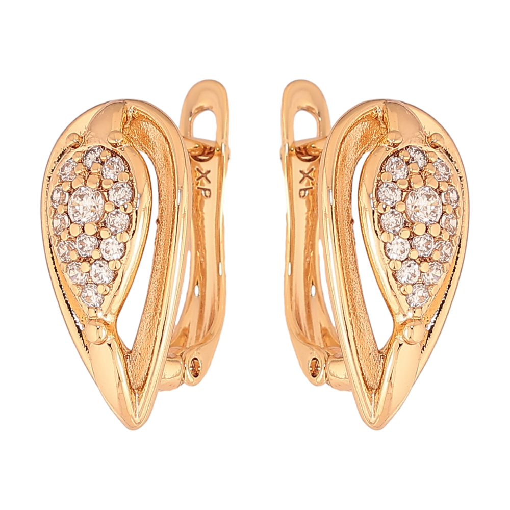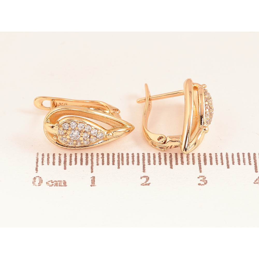 Серьги Xuping цвет Позолота 18К английский замок "Узор с кристаллами"