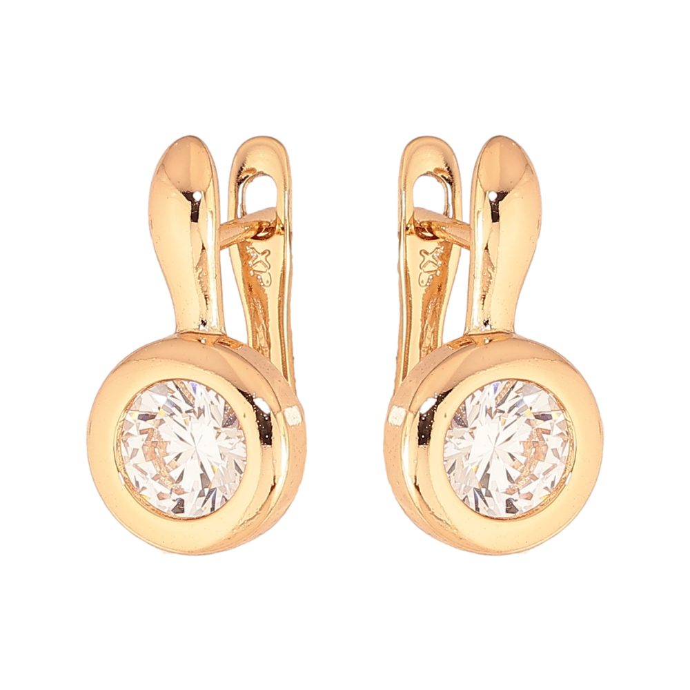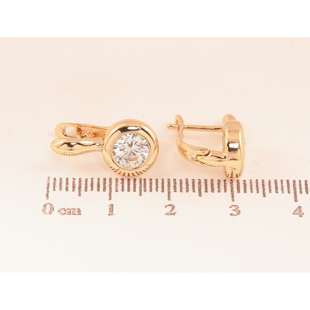 Серьги Xuping цвет Позолота 18К английский замок "Узор с кристаллами"