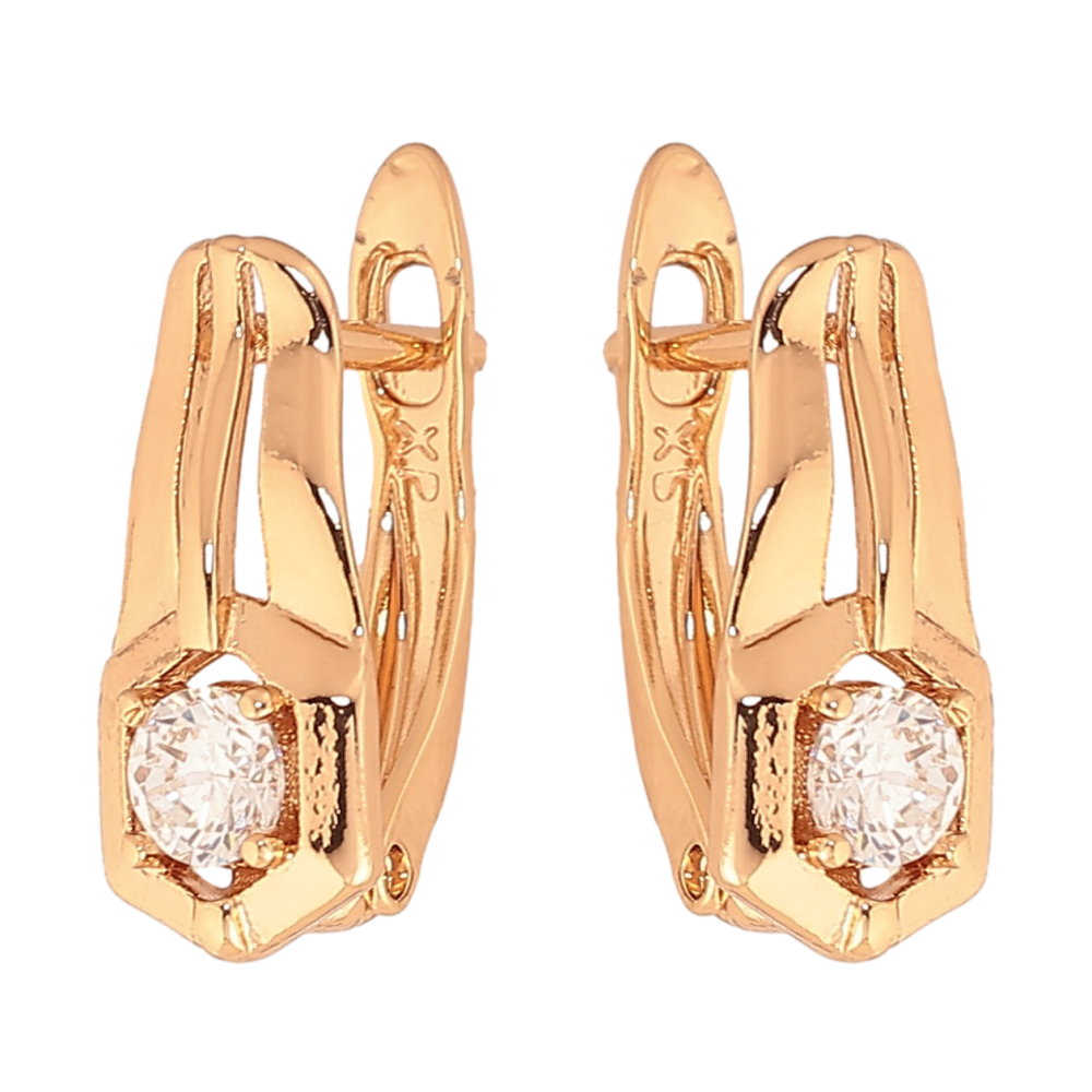 Серьги Xuping цвет Позолота 18К английский замок "Узор с кристаллами" фото №1