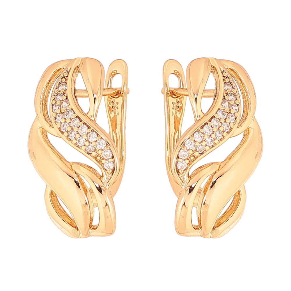 Серьги Xuping цвет Позолота 18К английский замок "Узор с кристаллами"