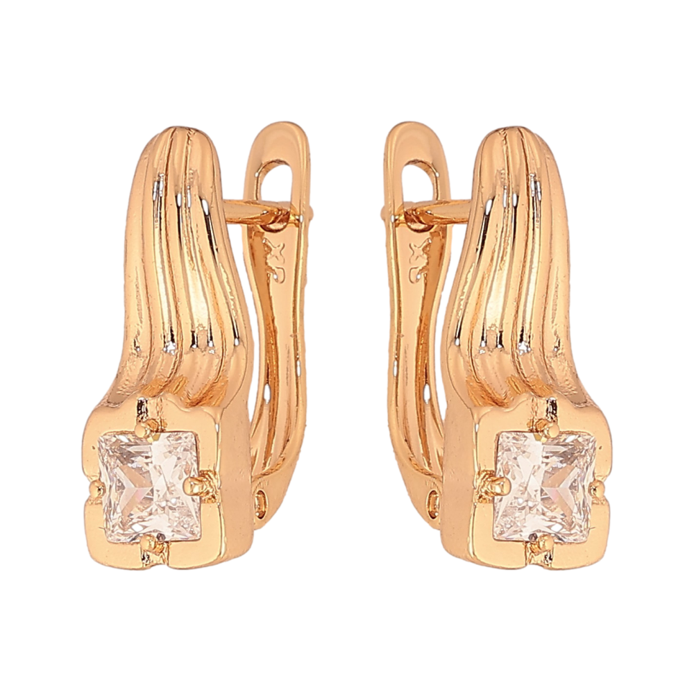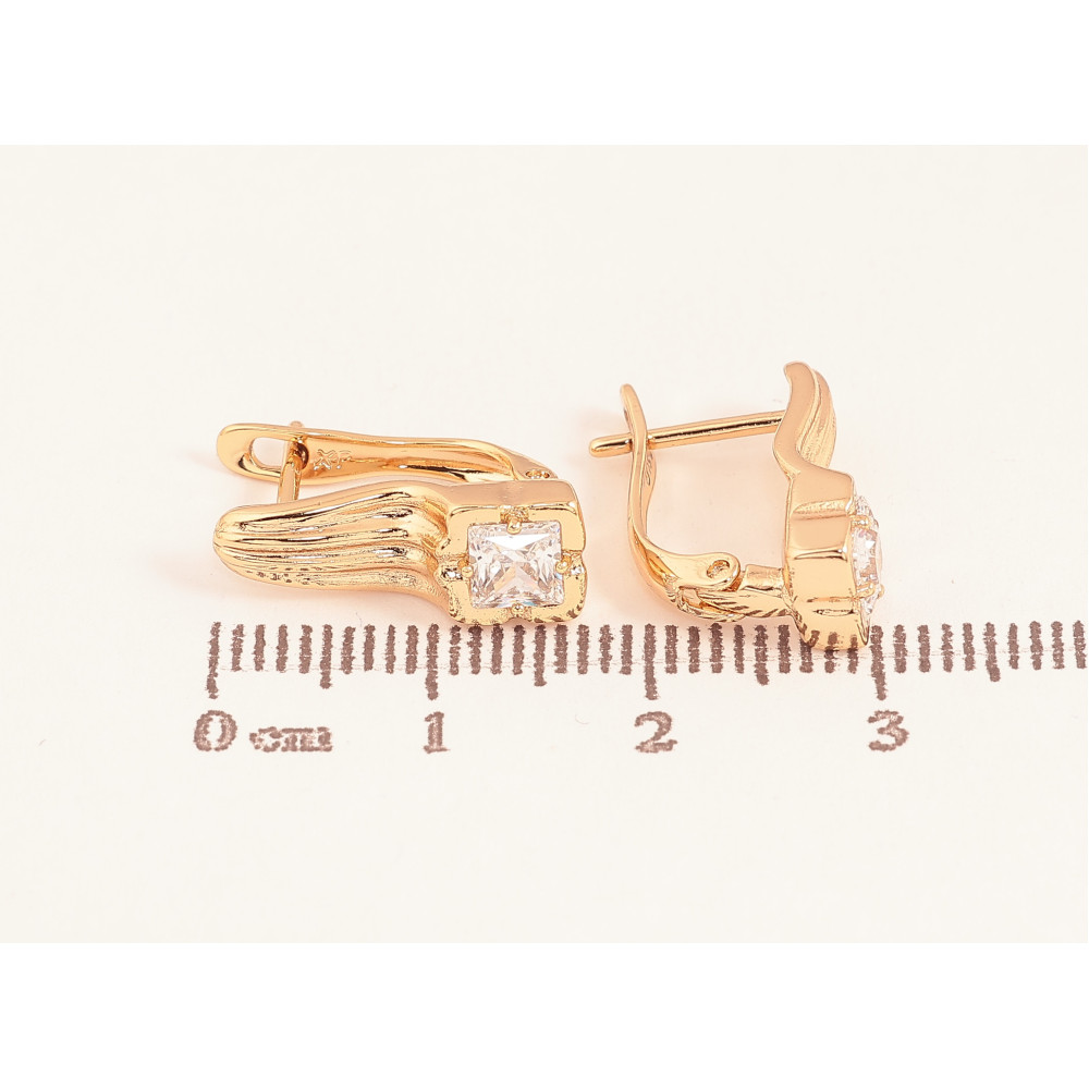 Серьги Xuping цвет Позолота 18К английский замок "Узор с кристаллами"
