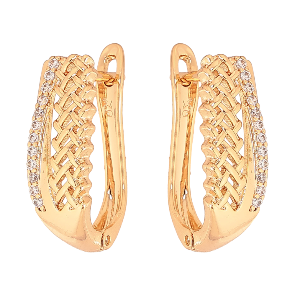Серьги Xuping цвет Позолота 18К английский замок "Узор с кристаллами"