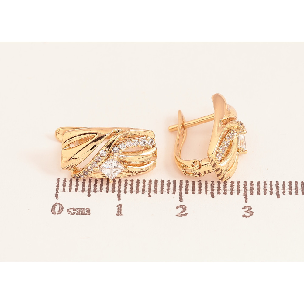 Серьги Xuping цвет Позолота 18К английский замок "Узор с кристаллами" фото №1