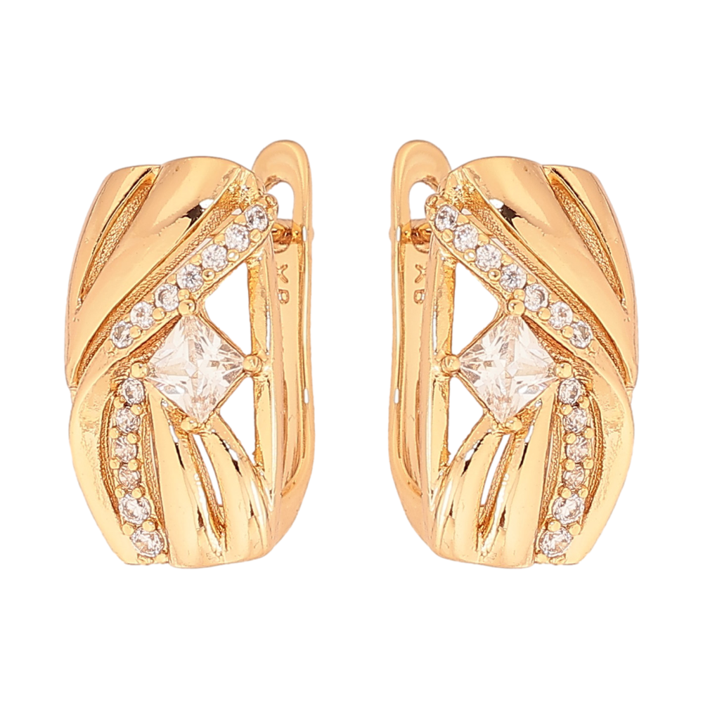 Серьги Xuping цвет Позолота 18К английский замок "Узор с кристаллами"