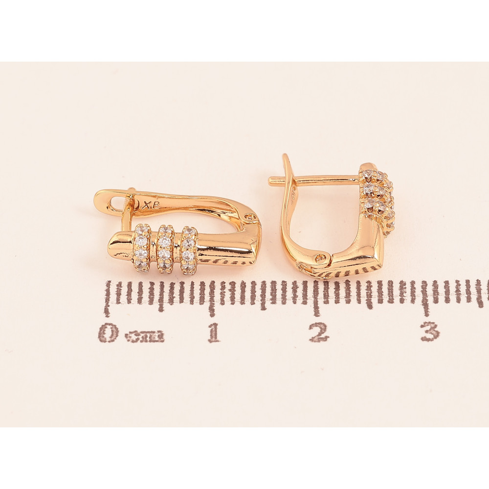 Серьги Xuping цвет Позолота 18К английский замок "Узор с кристаллами"