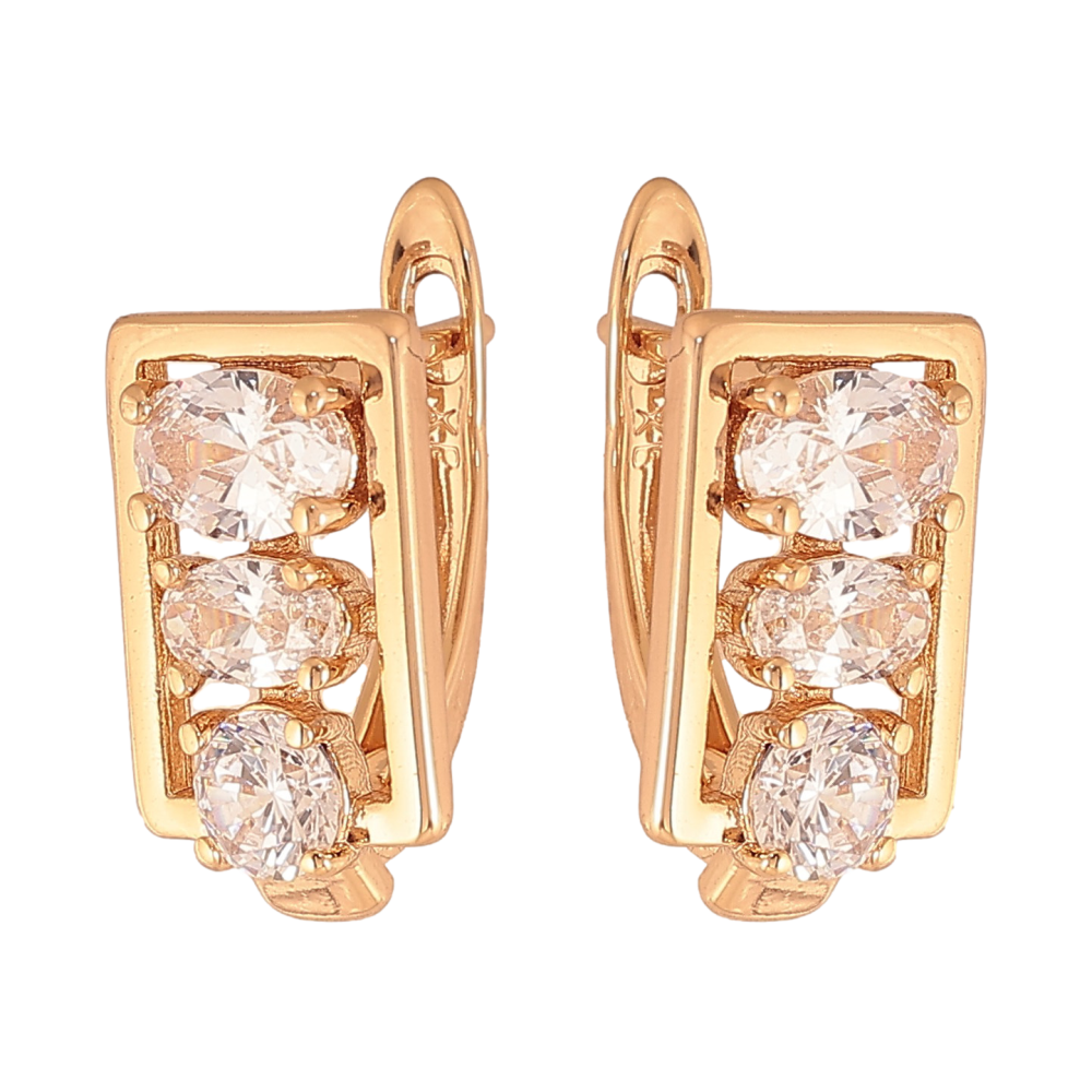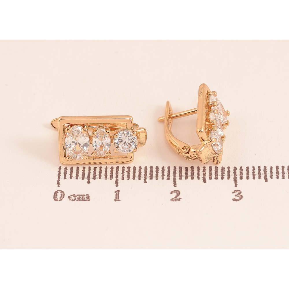 Серьги Xuping цвет Позолота 18К английский замок "Узор с кристаллами" фото №1