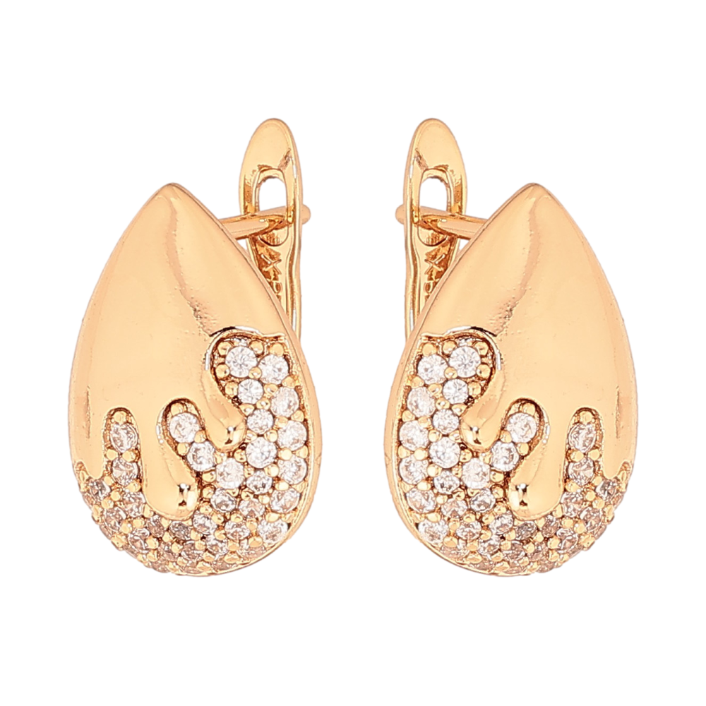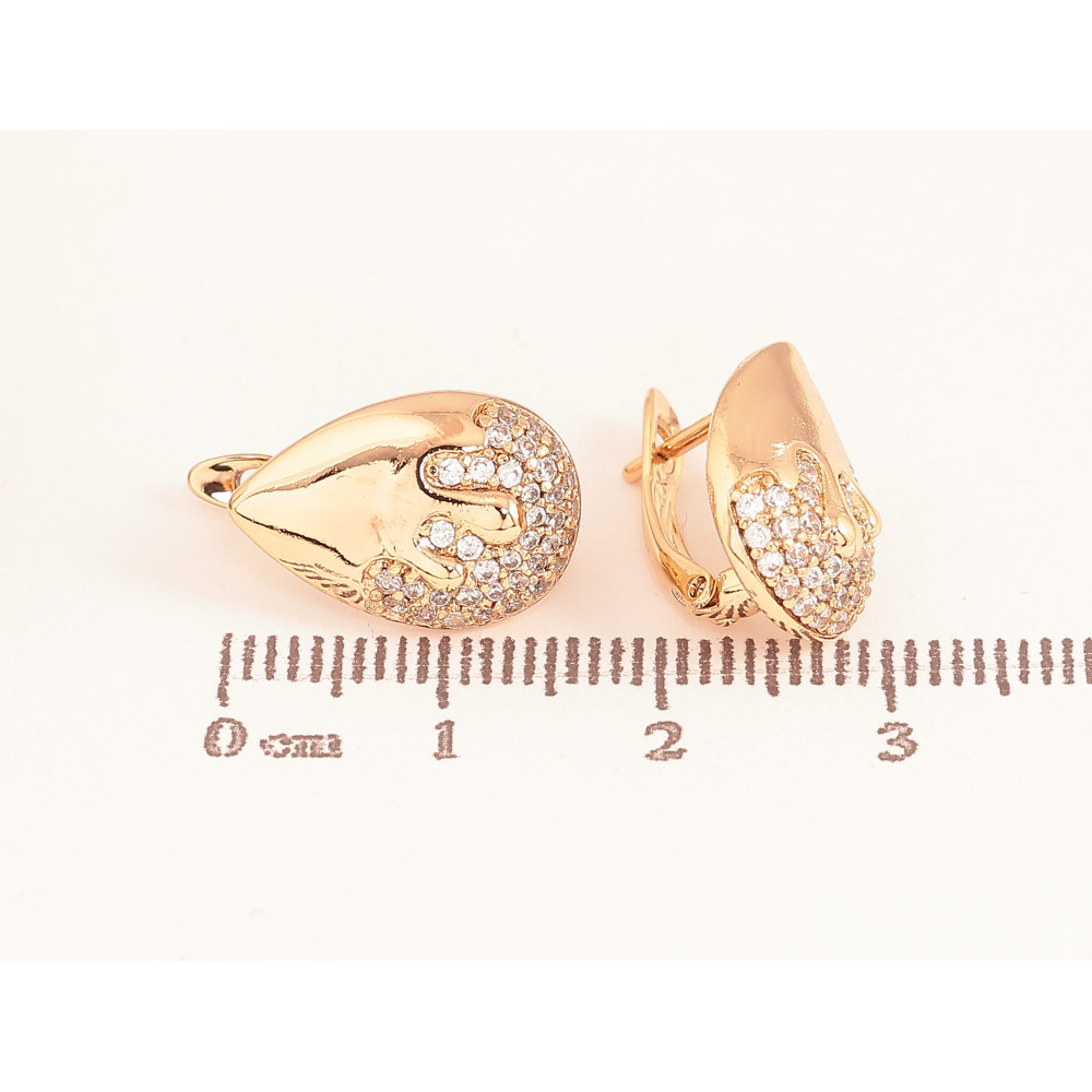 Серьги Xuping цвет Позолота 18К английский замок "Узор с кристаллами"