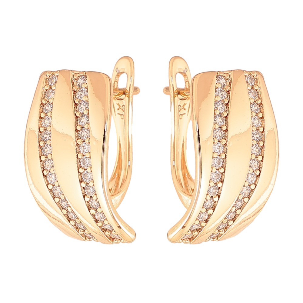 Серьги Xuping цвет Позолота 18К английский замок "Узор с кристаллами"