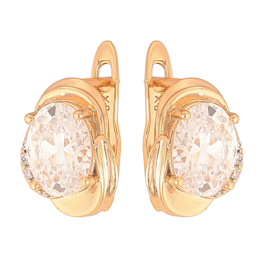 Серьги Xuping цвет Позолота 18К английский замок "Узор с кристаллами" фото №1