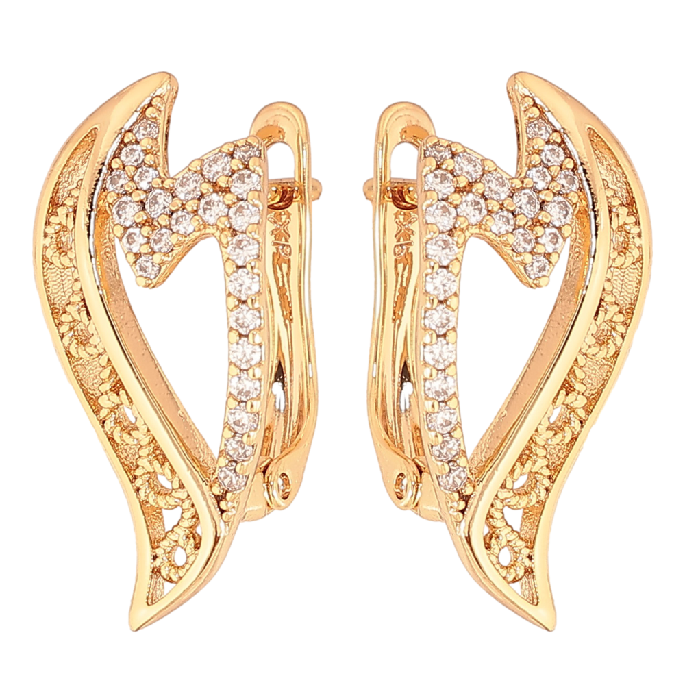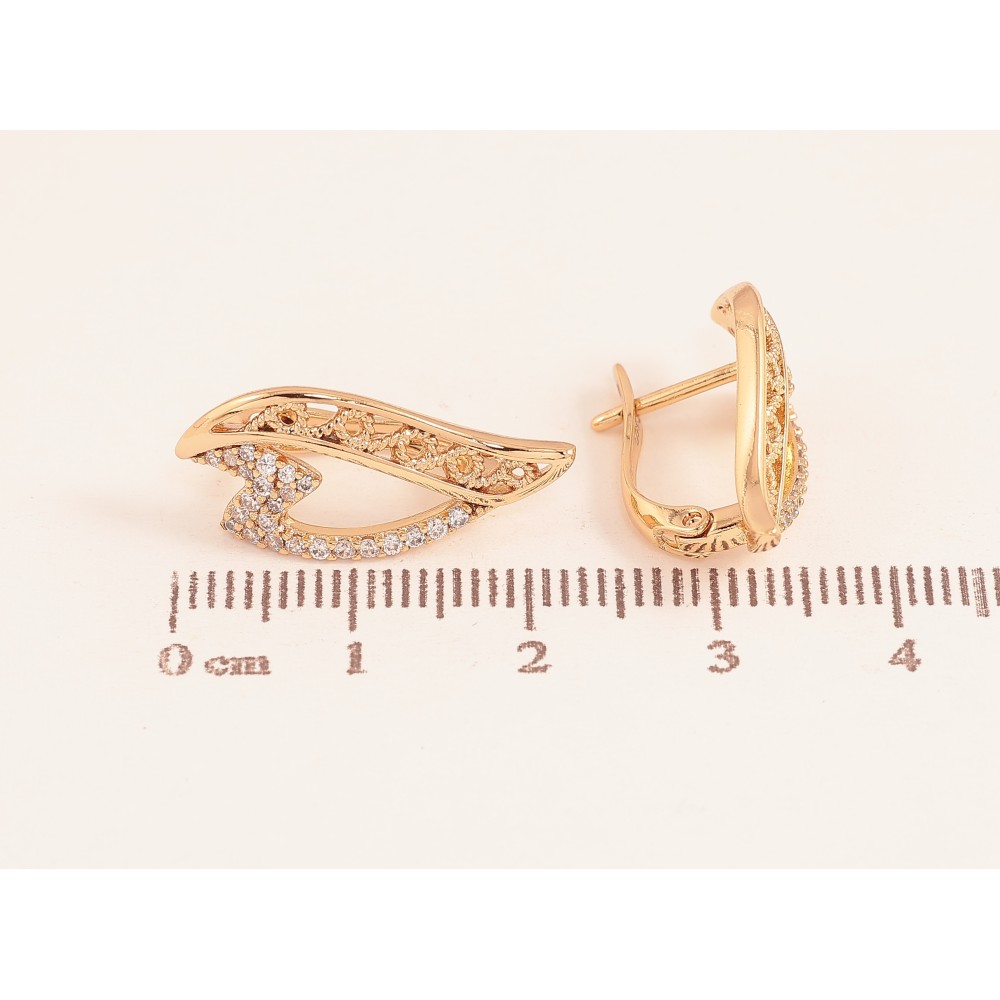 Серьги Xuping цвет Позолота 18К английский замок "Узор с кристаллами" фото №1