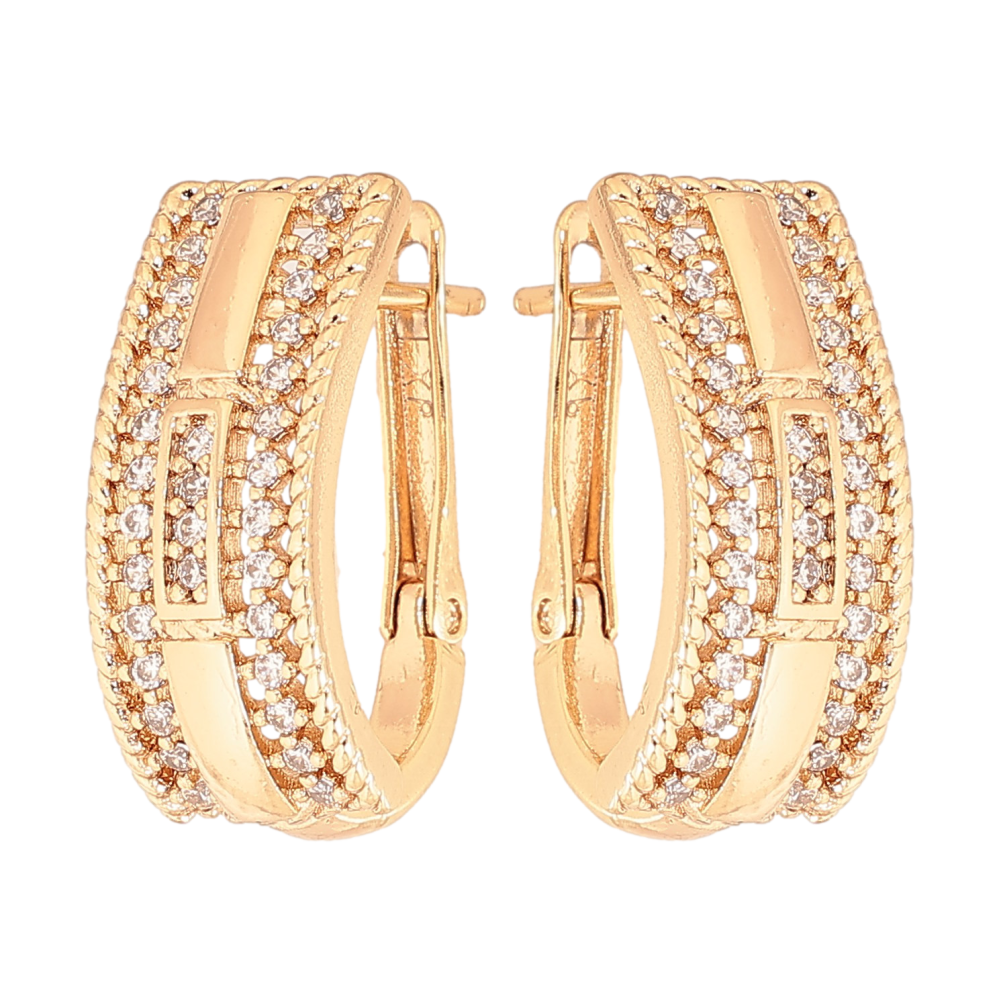 Серьги Xuping цвет Позолота 18К английский замок "Узор с кристаллами" фото №1