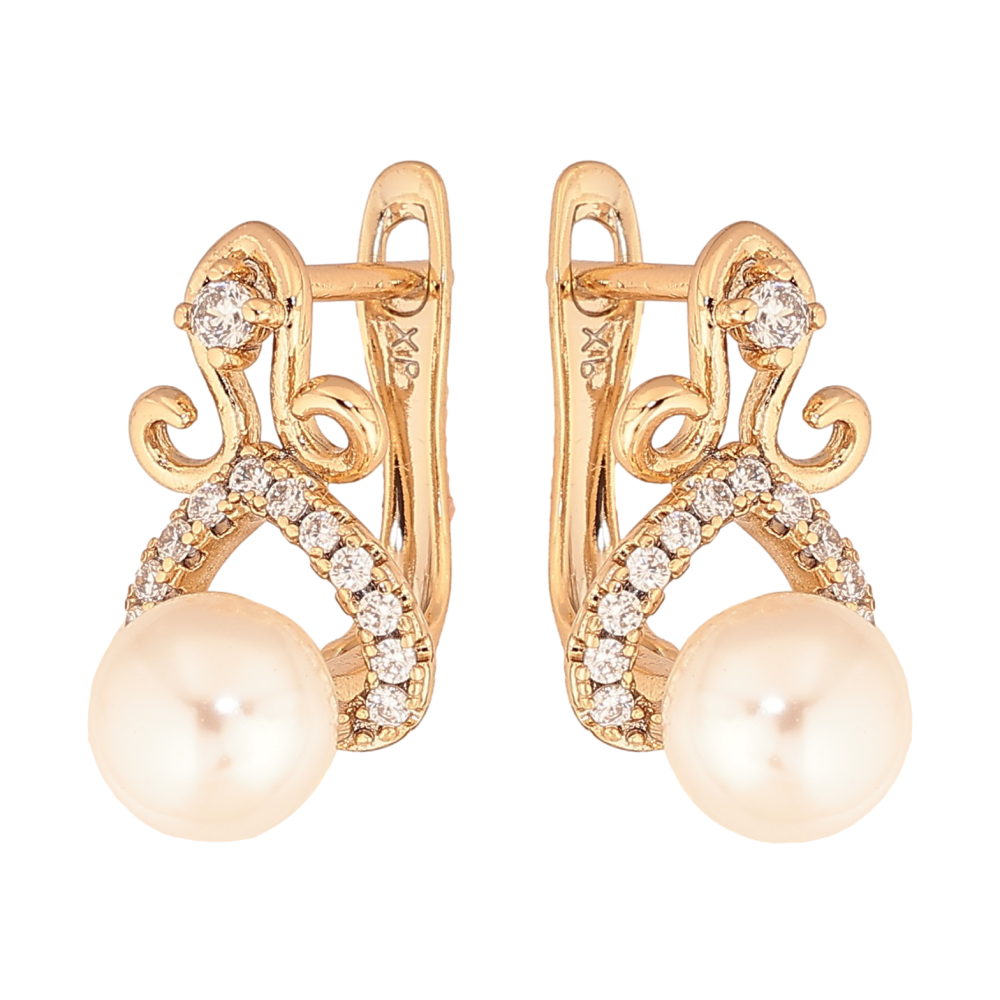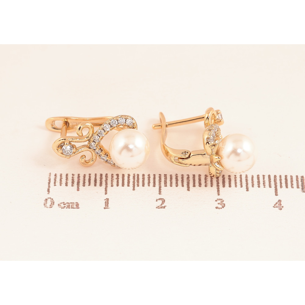 Серьги Xuping цвет Позолота 18К английский замок "Узор с кристаллами и жемчужинами"