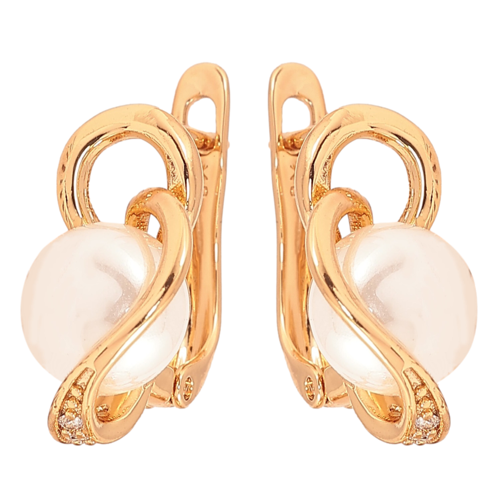 Серьги Xuping цвет Позолота 18К английский замок "Узор с жемчужинами"