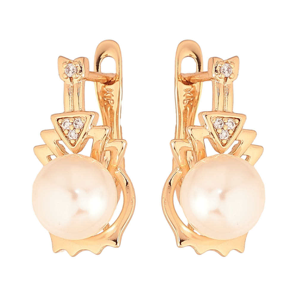 Серьги Xuping цвет Позолота 18К английский замок "Узор с жемчужинами"