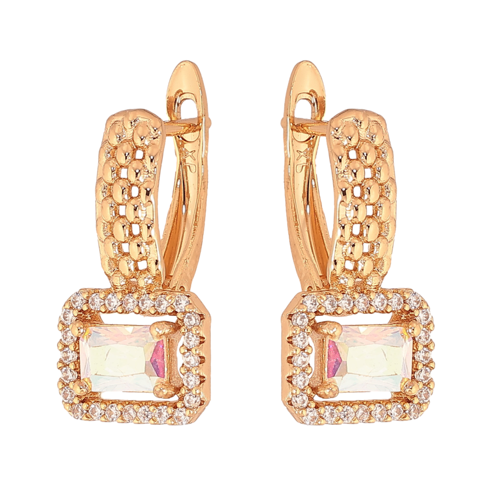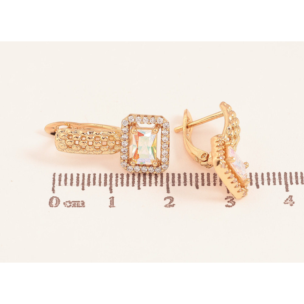 Серьги Xuping цвет Позолота 18К английский замок "Узор с радужным кристаллом в обрамлении"