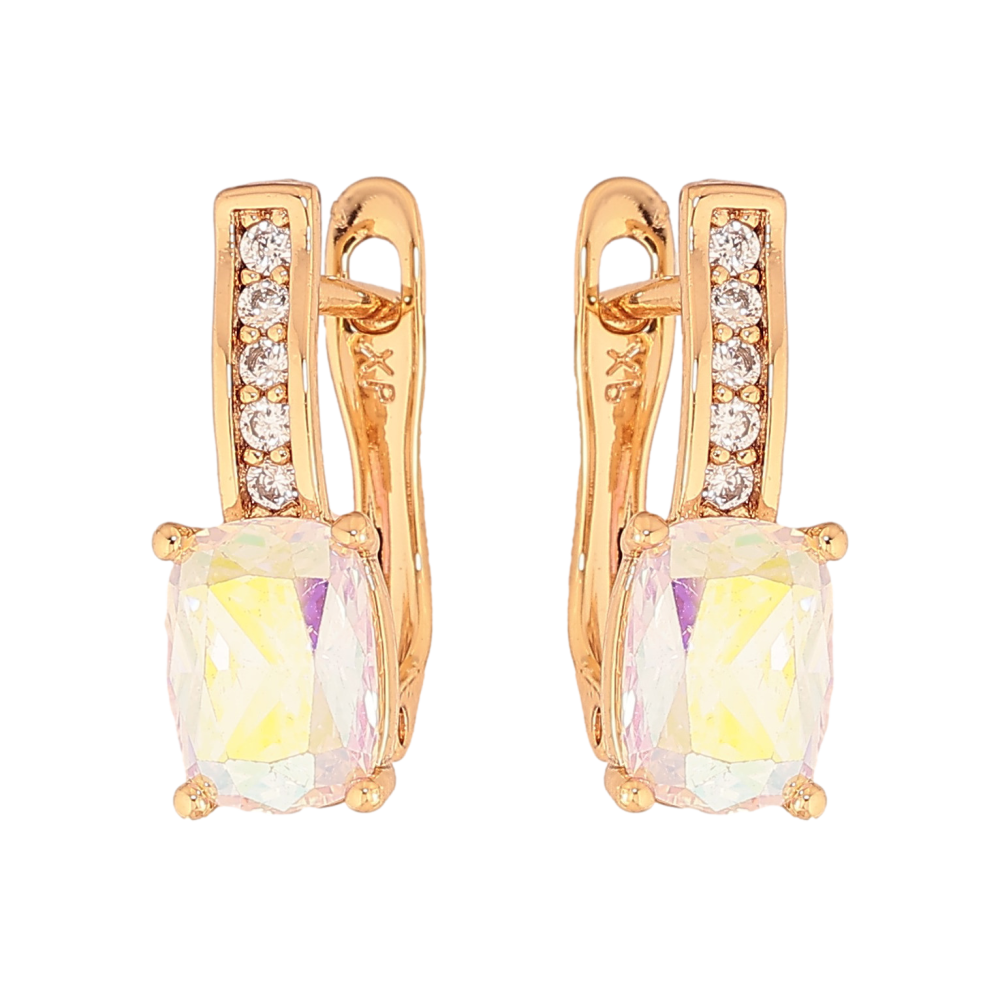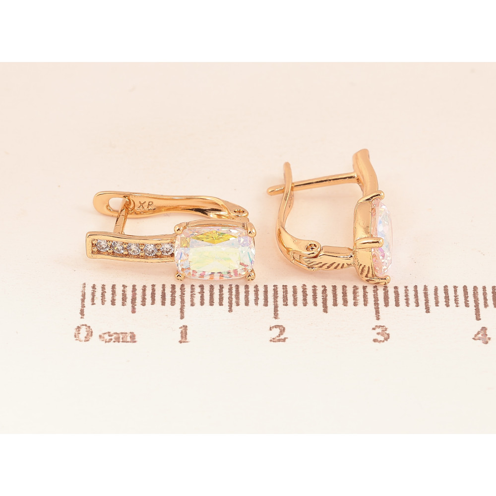 Серьги Xuping цвет Позолота 18К английский замок "Узор с радужными кристаллами"