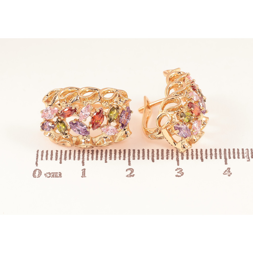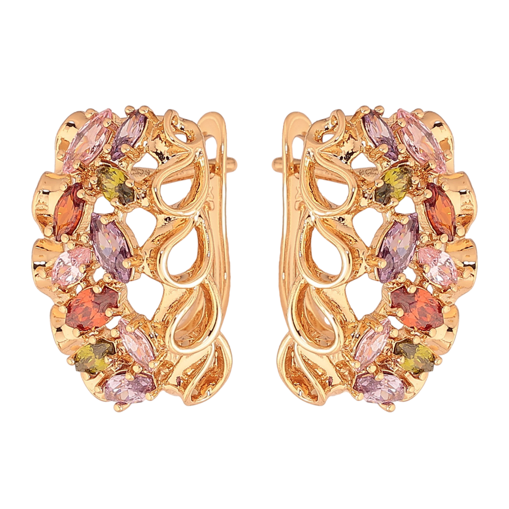 Серьги Xuping цвет Позолота 18К английский замок "Узор с разноцветными кристаллами"