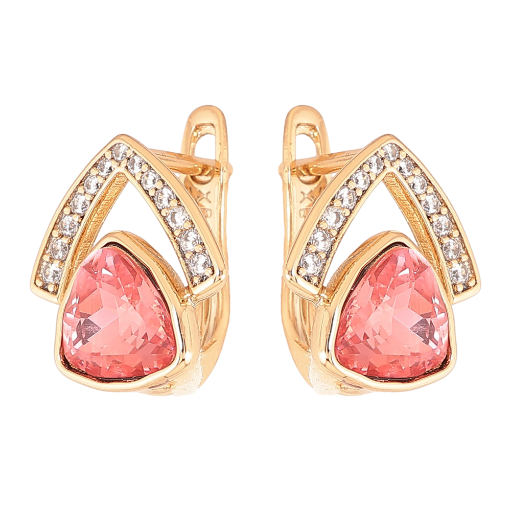 Серьги Xuping цвет Позолота 18K английский замок "Узор с розовыми кристаллами"