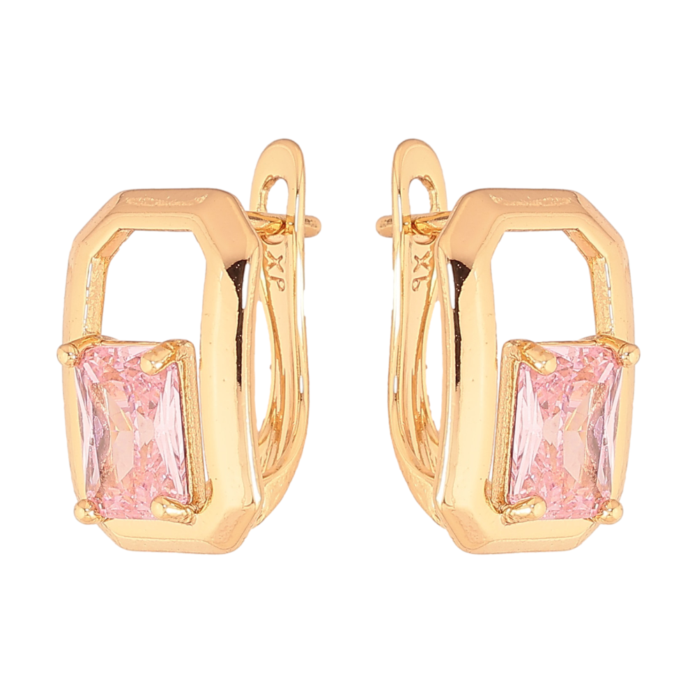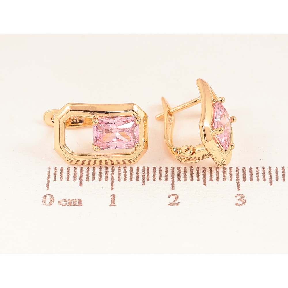 Серьги Xuping цвет Позолота 18К английский замок "Узор с розовыми кристаллами"