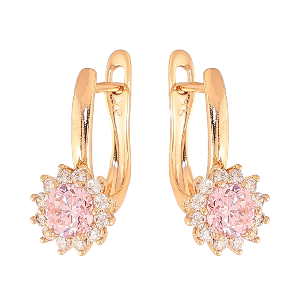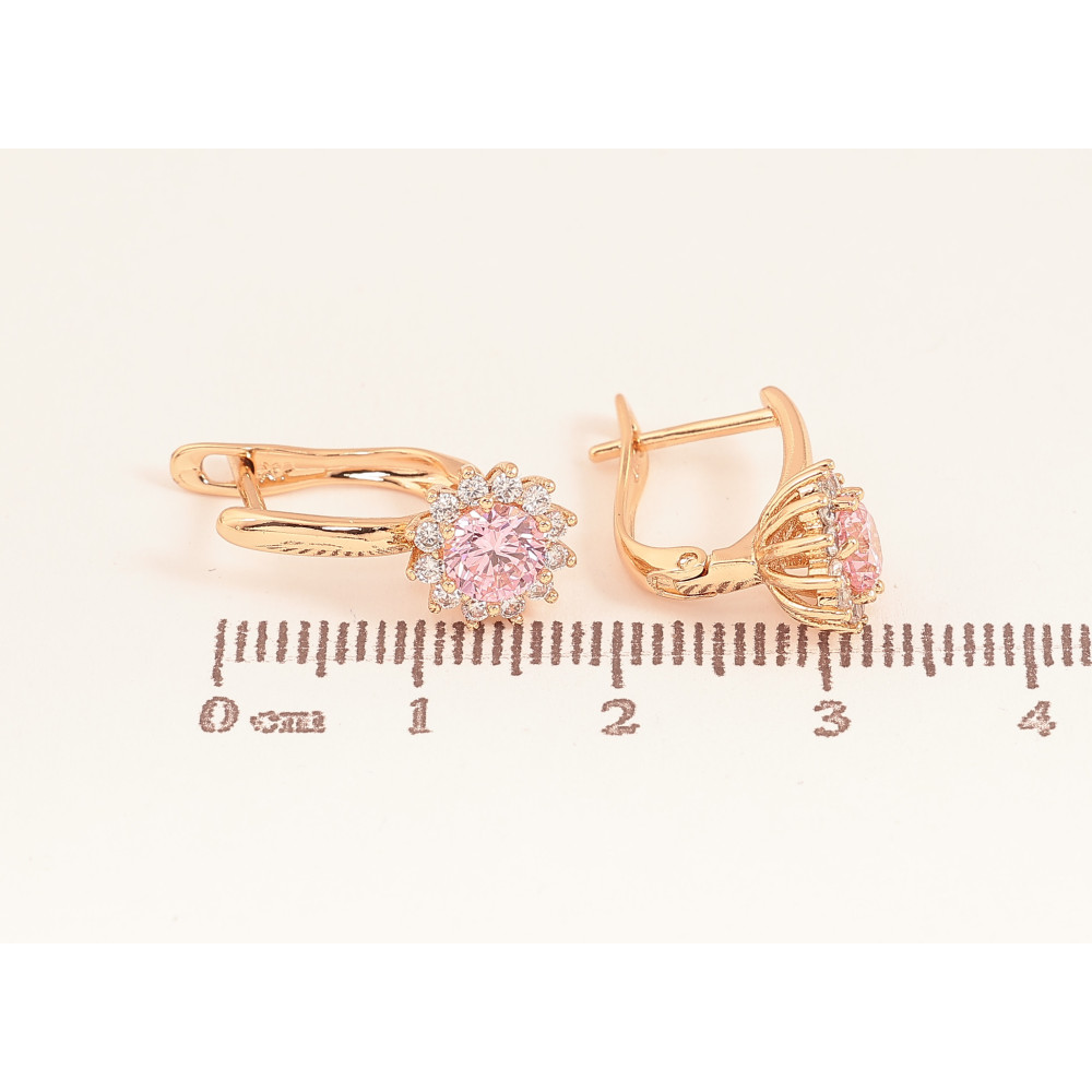 Серьги Xuping цвет Позолота 18К английский замок "Узор с розовыми кристаллами"