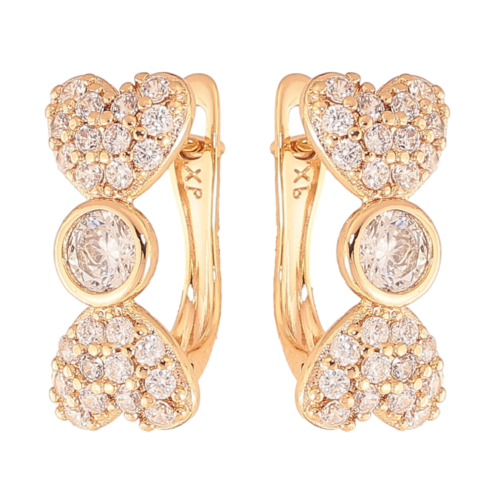 Серьги Xuping цвет Позолота 18K английский замок "Узор с сердечками и инкрустацией кристаллами"