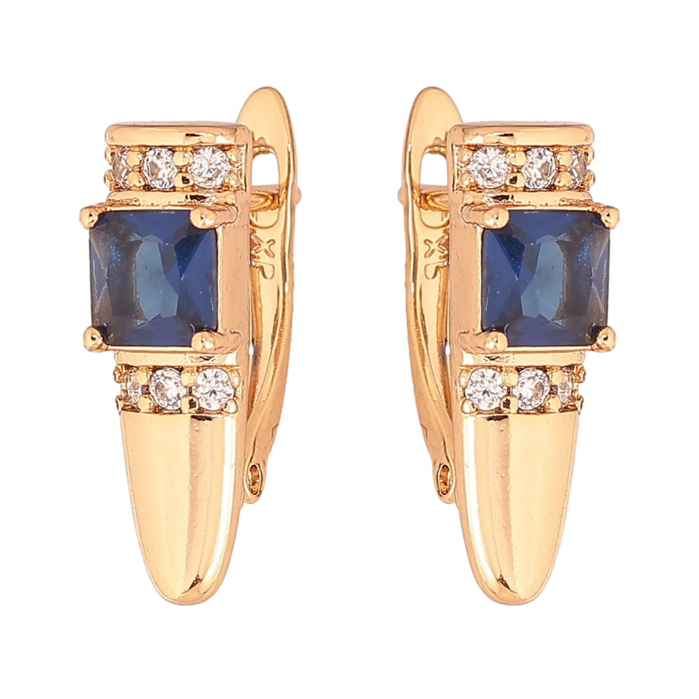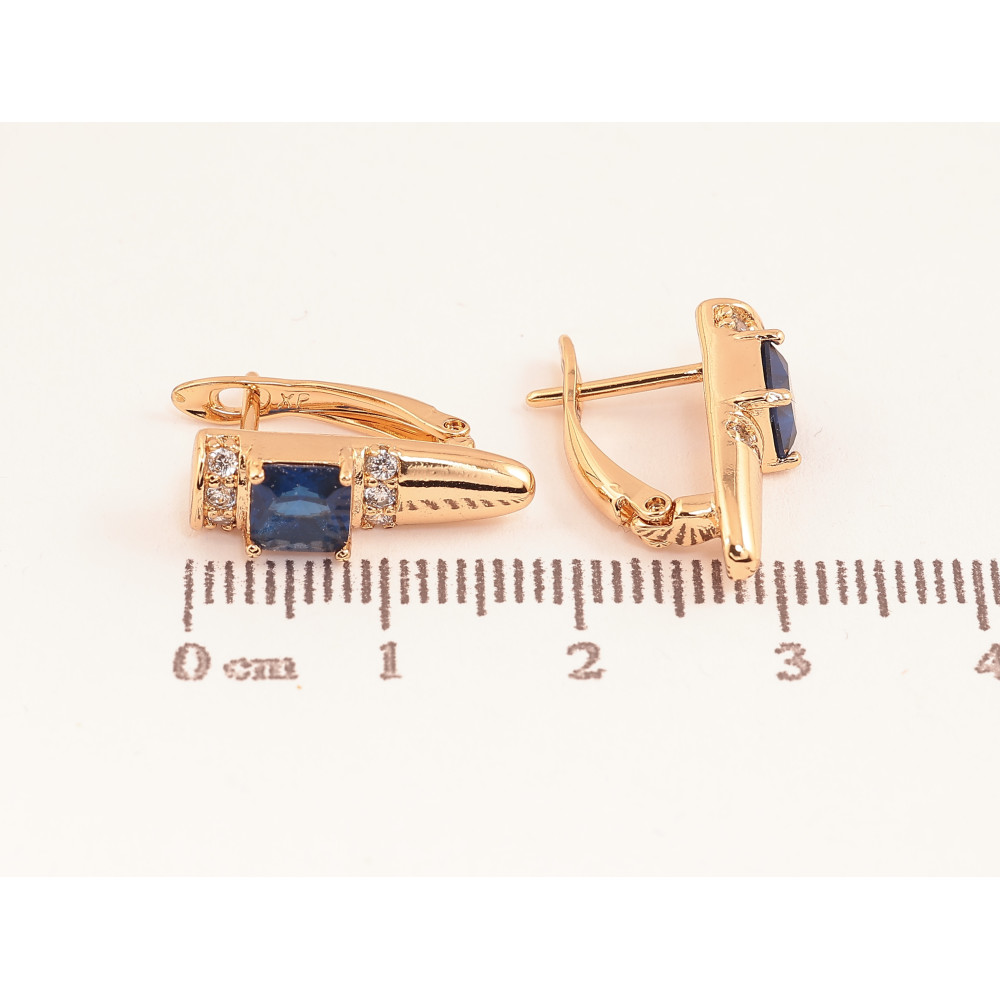 Серьги Xuping цвет Позолота 18K английский замок "Узор с синими кристаллами"