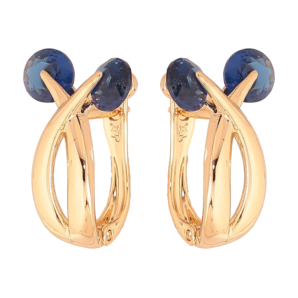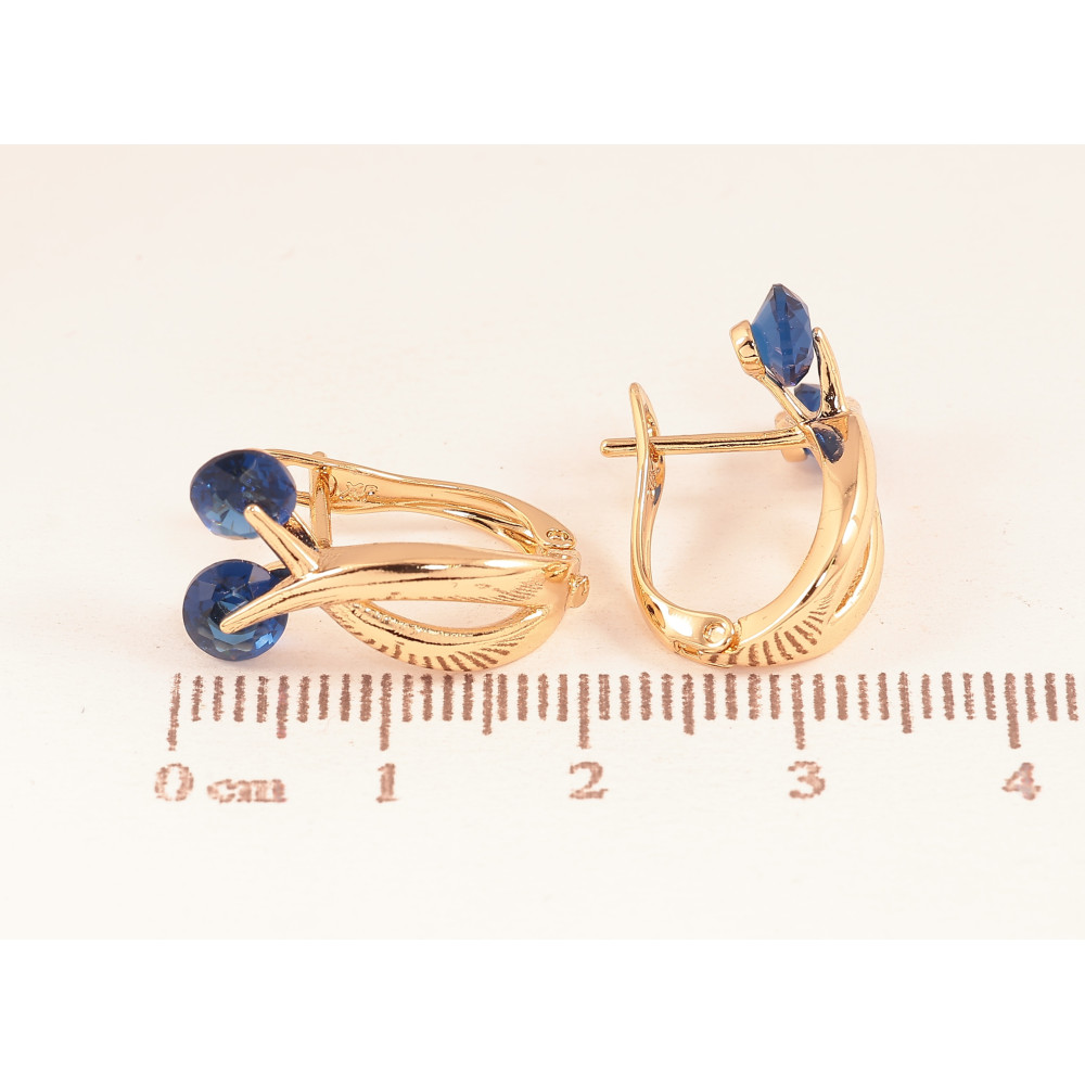 Серьги Xuping цвет Позолота 18К английский замок "Узор с синими кристаллами"