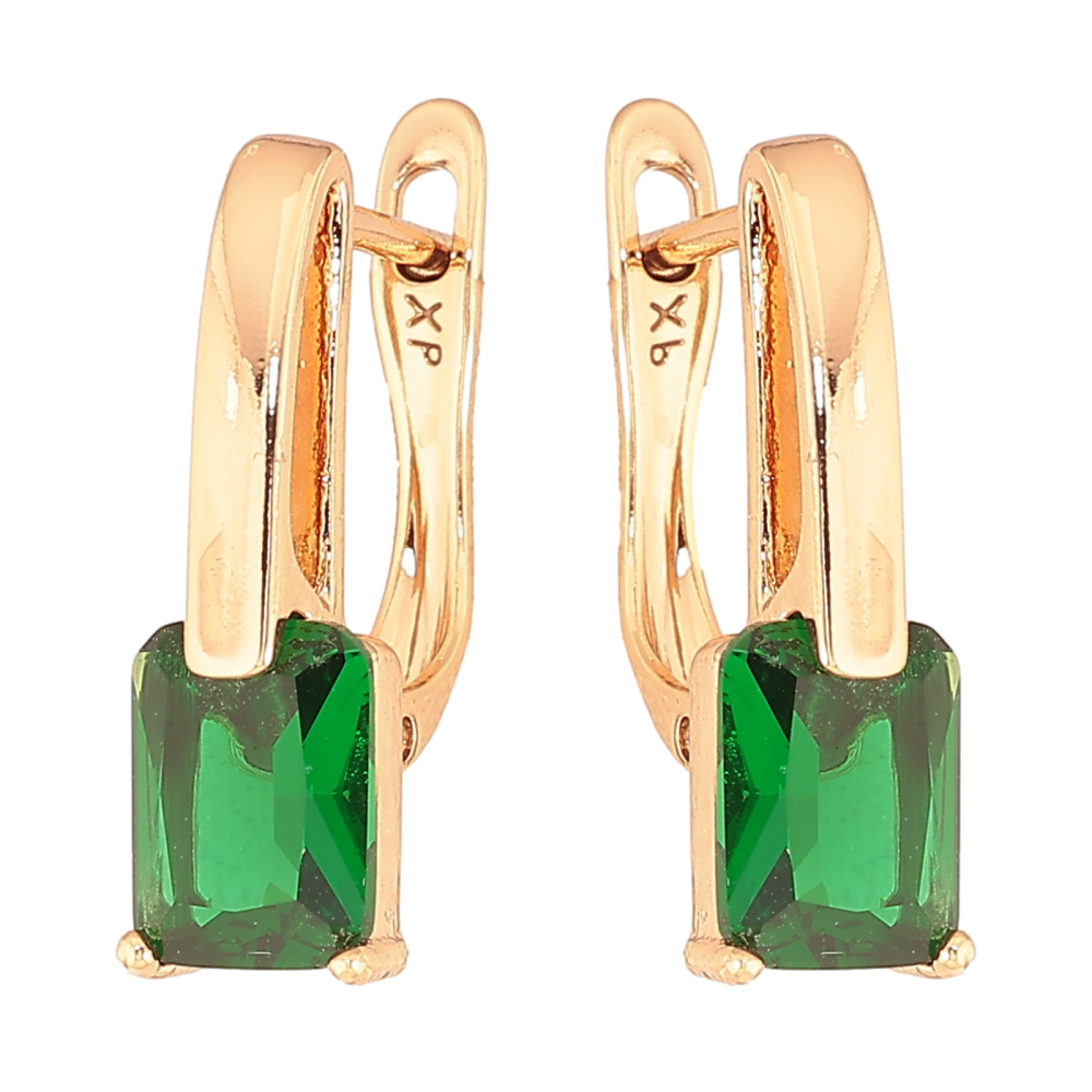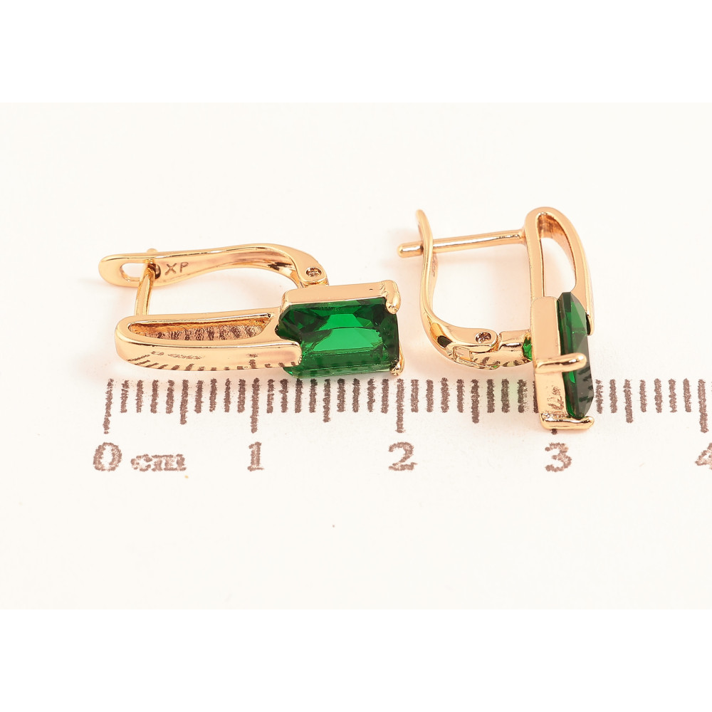 Серьги Xuping цвет Позолота 18K английский замок "Узор с зелеными кристаллами"