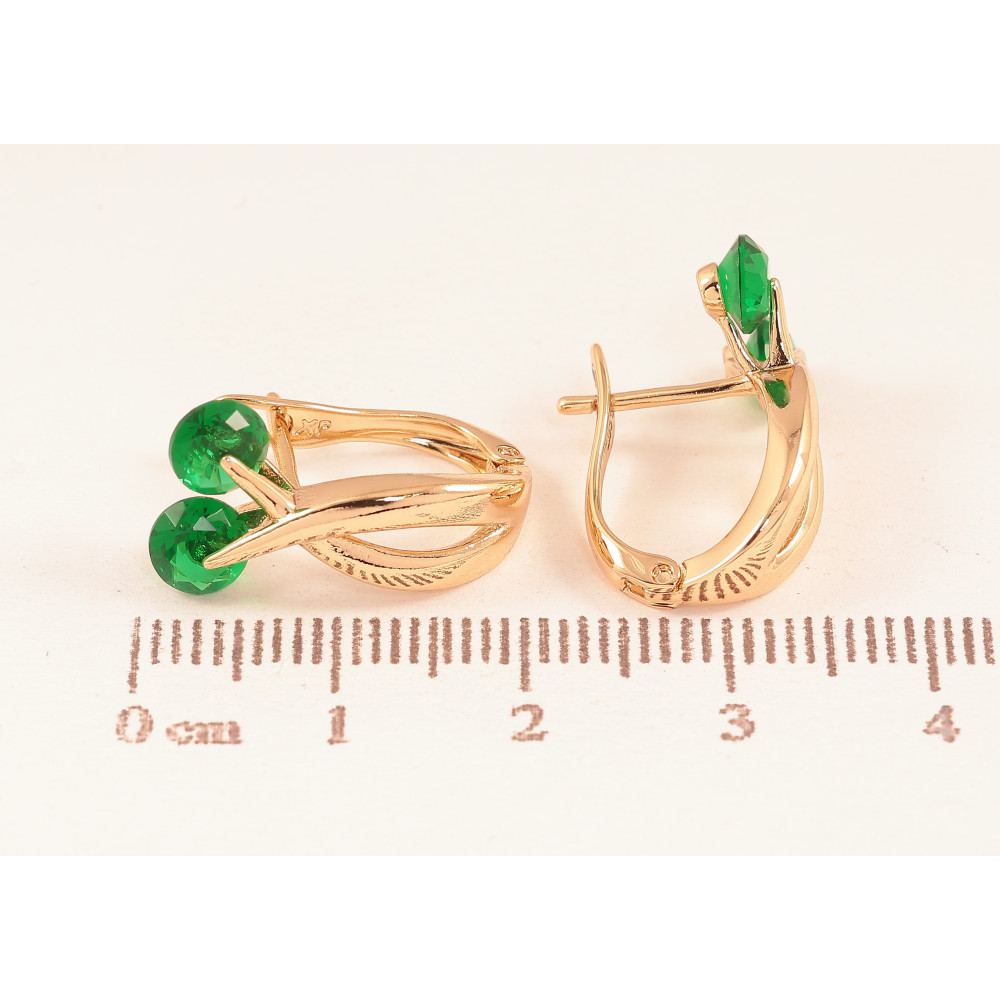 Серьги Xuping цвет Позолота 18К английский замок "Узор с зелеными кристаллами"