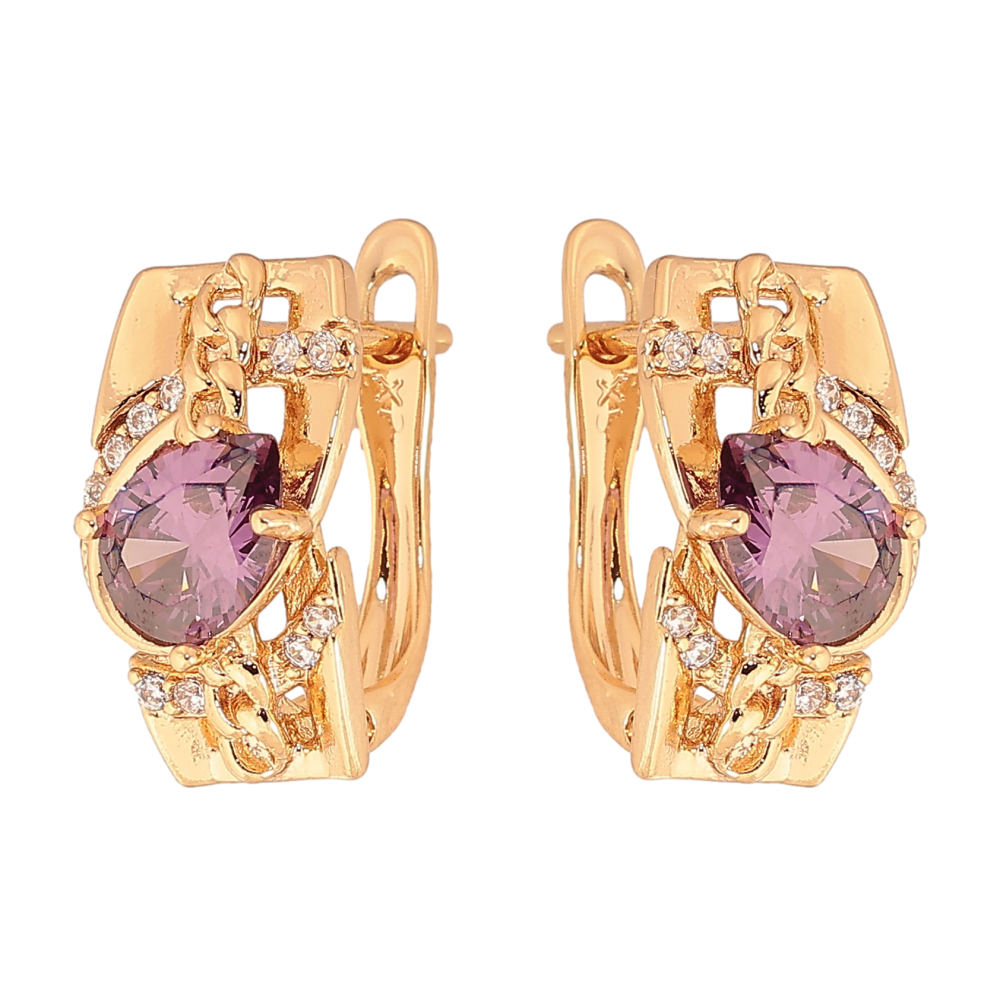 Серьги Xuping цвет Позолота 18К английский замок "Узор с сиреневыми кристаллами"